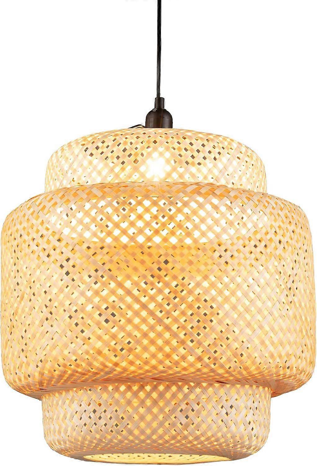 Bamboo Pendant Light 40 x H 43 cm, Rustic Wire Shade 0-90cm E27 40W, Natural Pendant Light with Metal Ceiling Plate, Light Fixture for Living Room