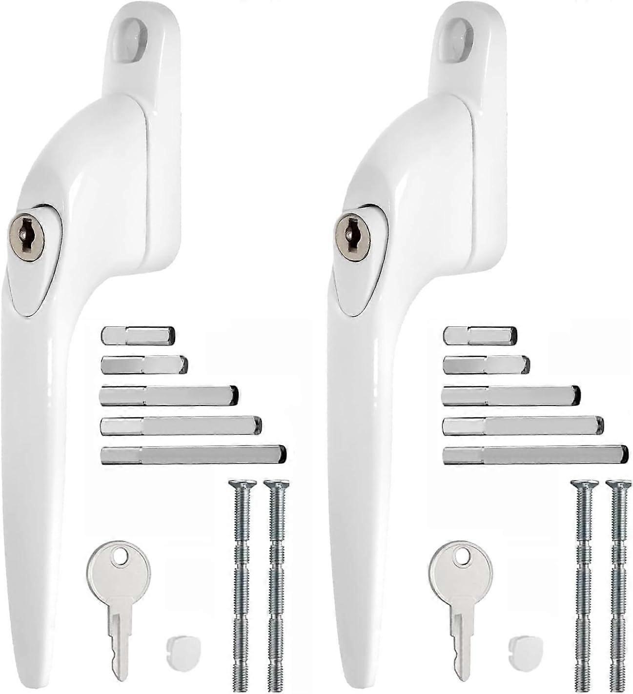 Set of 2 lockable white aluminum UPVC window handles for UPVC windows with key for 10/15/30/40/50mm multi-pins
