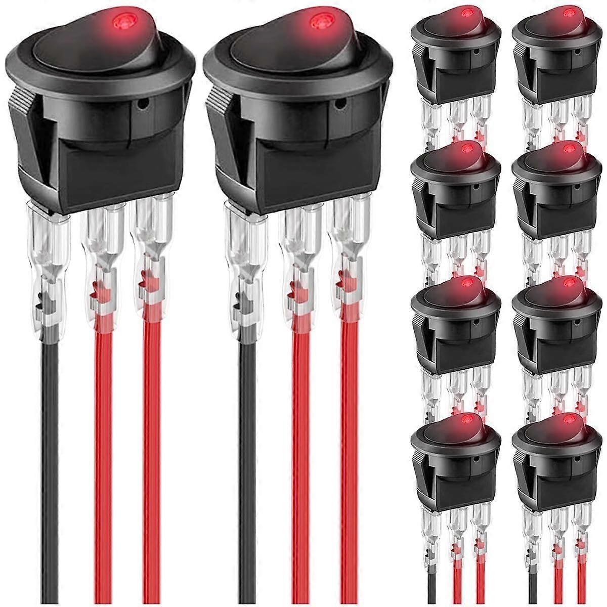 10pcs 12V 20A 3-Pin Wired Round Rocker Switch with LED Light, Power On/Off, SPST Illuminated Rocker Switch with 30pcs Locking Terminal Wires