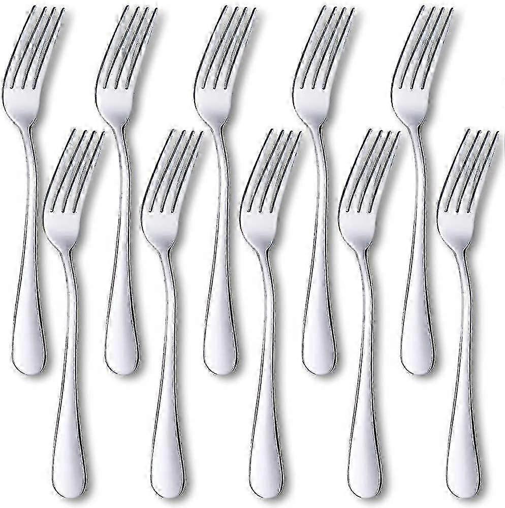 10 Pieces Stainless Steel Flatware Dinner Forks, Household Dining Metal Dinner Forks Silver