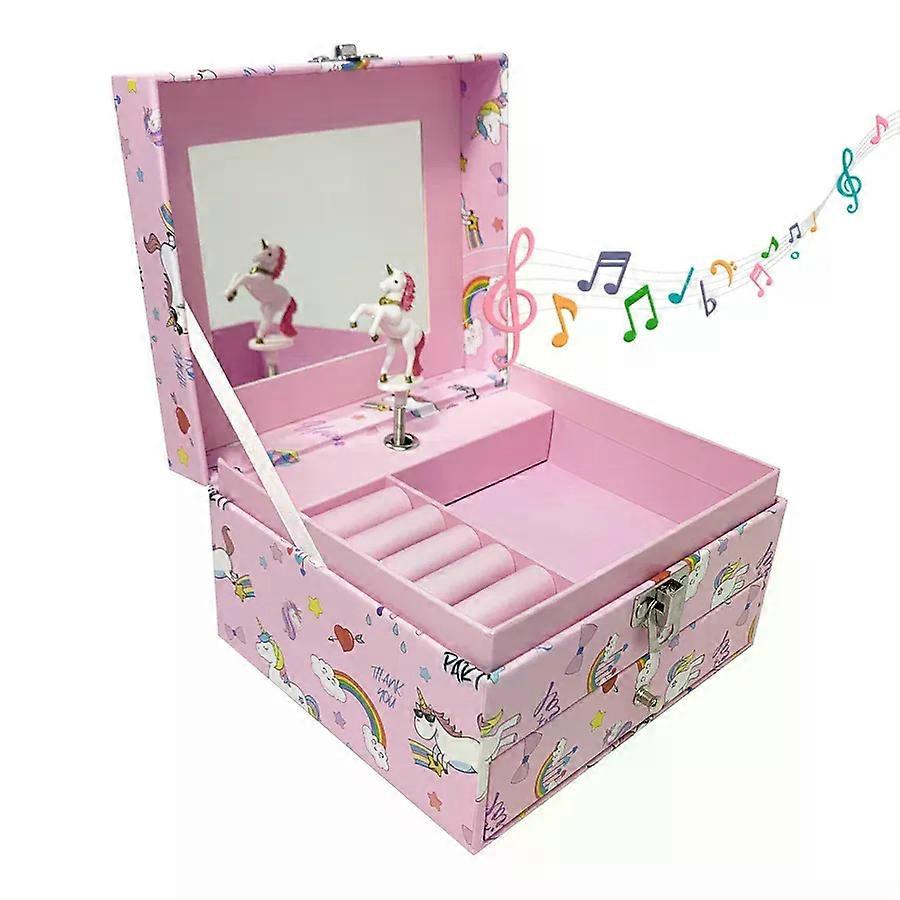 1pc Music Box with Drawer Mirror Rotating Pink Pony Jewelry Storage Box for Ring Necklaces Bracelets Birthday Gift