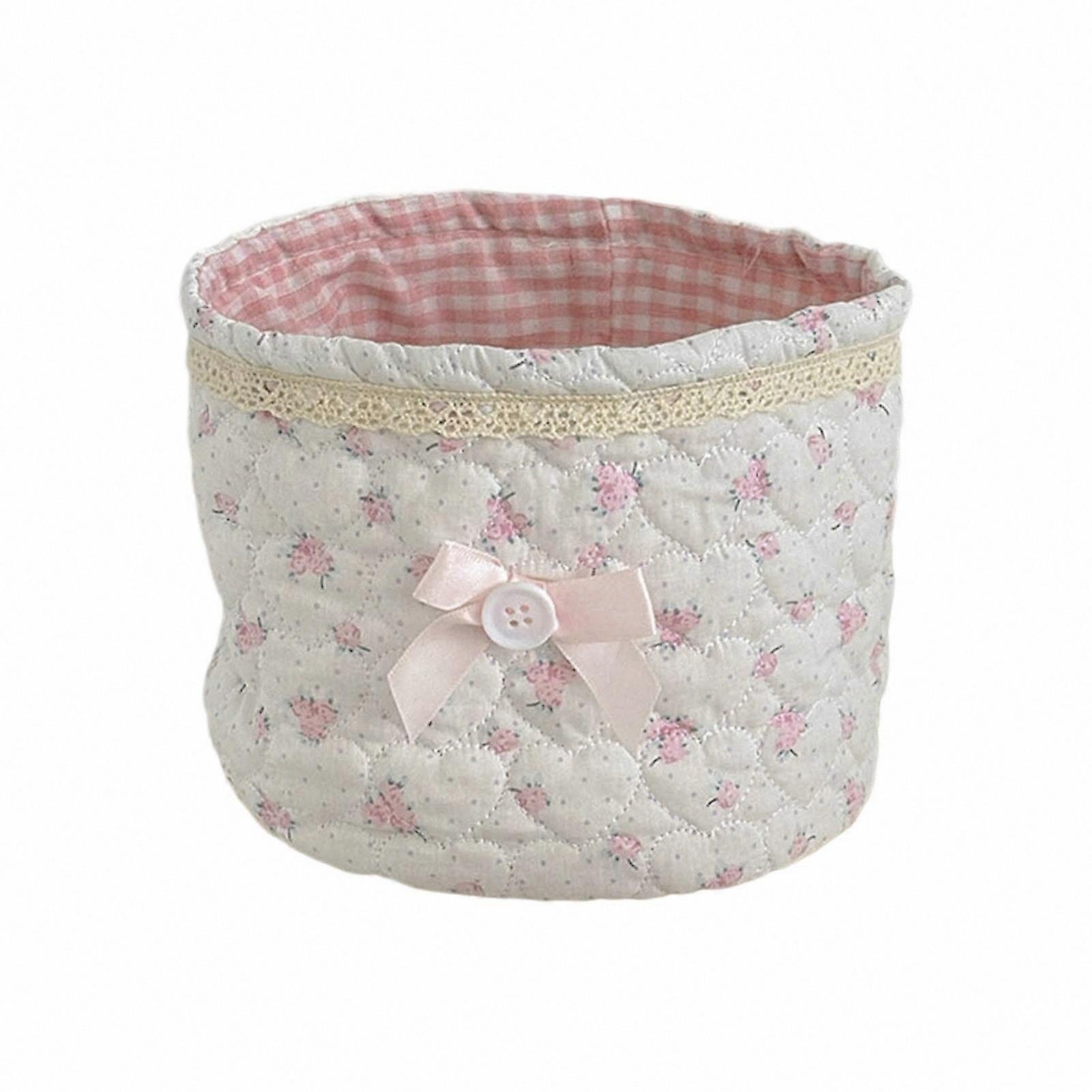 Round Cosmetic Organizer with Lace Embellishment Multifunctional Makeup Basket for Home Decor Multicolor Bowknot Design