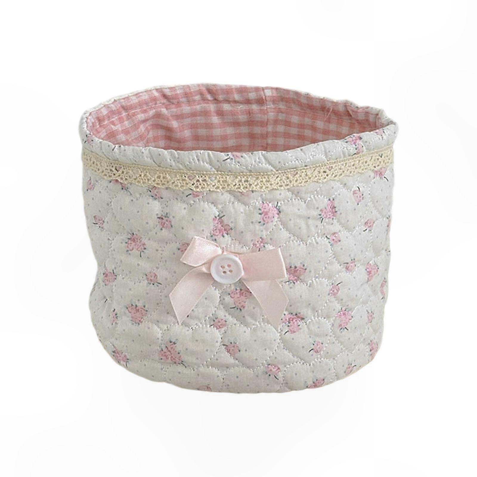 Round Cosmetic Organizer with Lace Embellishments Multifunctional Makeup Basket Featuring Elegant Bowknot for Home Decor Multicolor Storage Solution