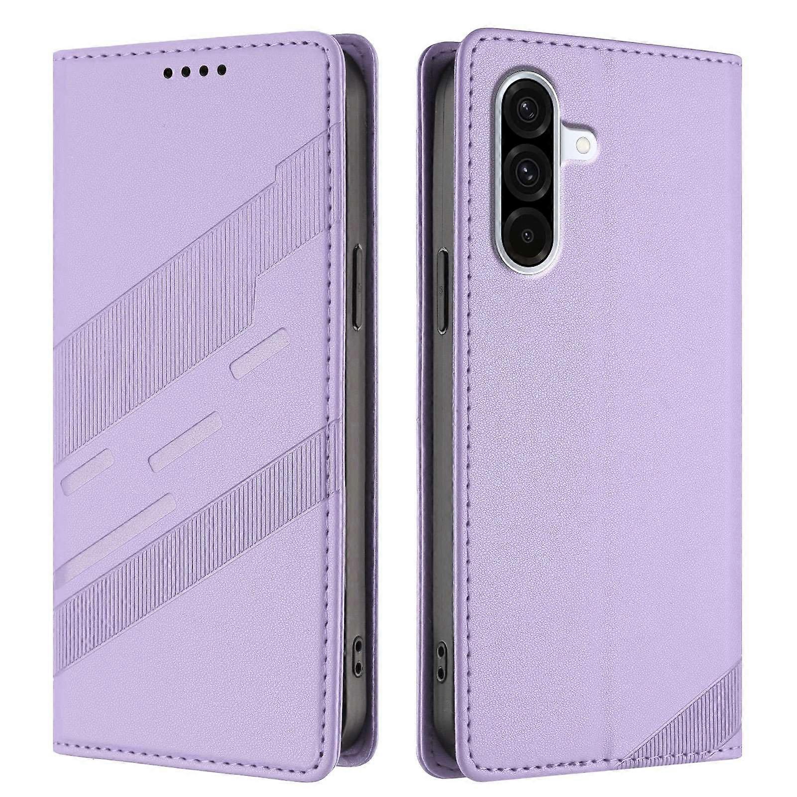 For Samsung Galaxy A37 5G Phone Cases Punk Style Imprinted Wallet Stand Leather Cover - Light Purple