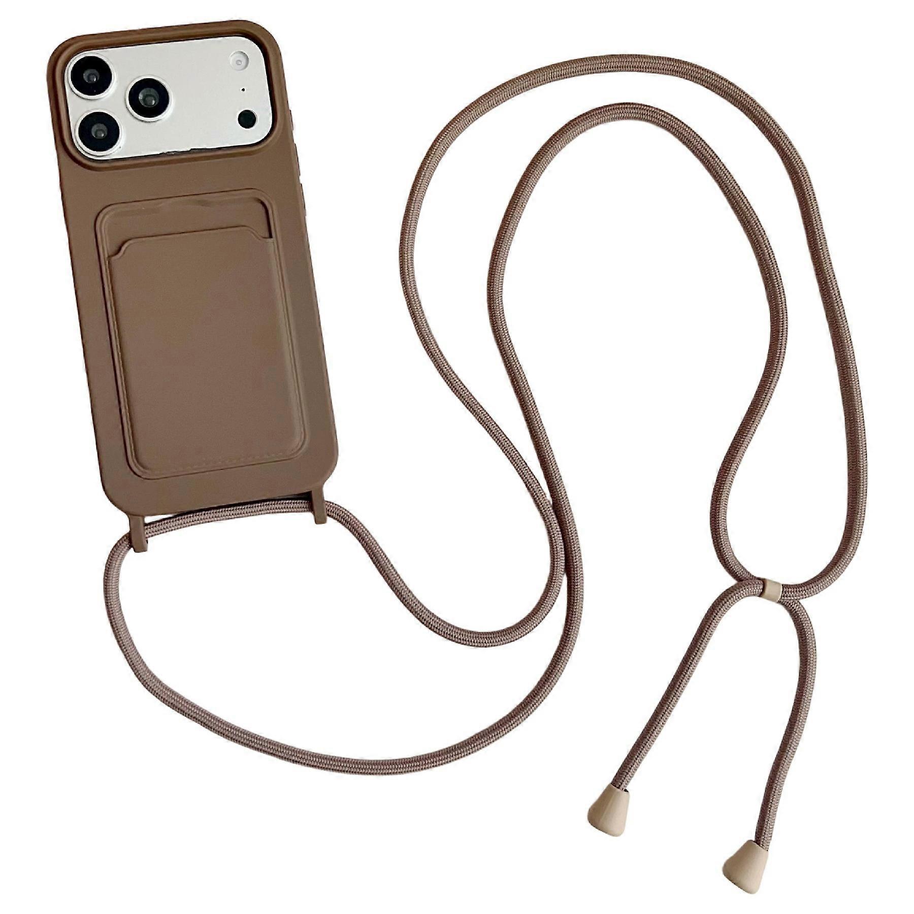 For iPhone 17 Pro Liquid Silicone Card Slot Cover Anti Scratch Protection Phone Case with Strap - Co