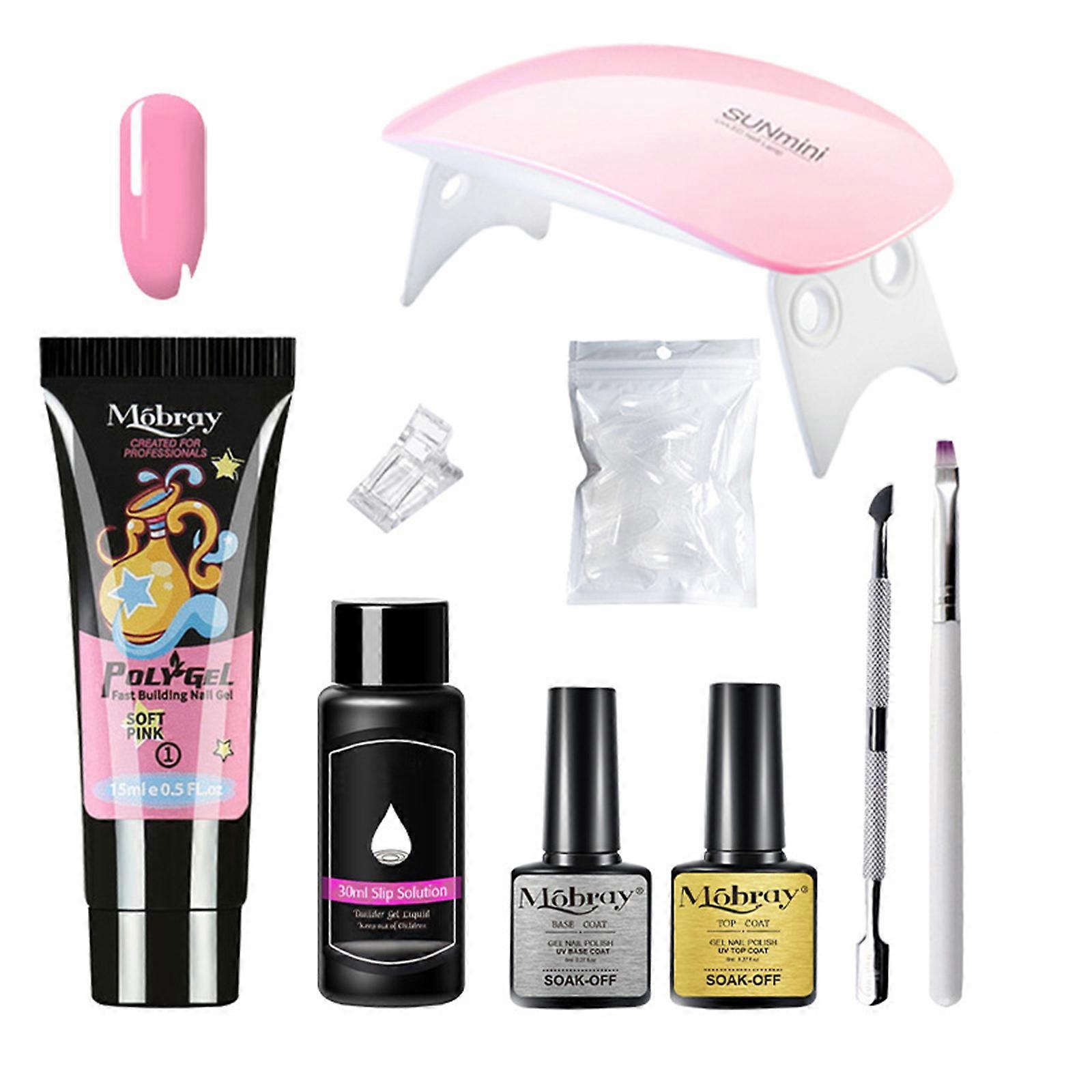 9Pcs Poly Gel Nail Starter Kit Nail Extension Gel Builder Kit UV Nail Lamp Top
