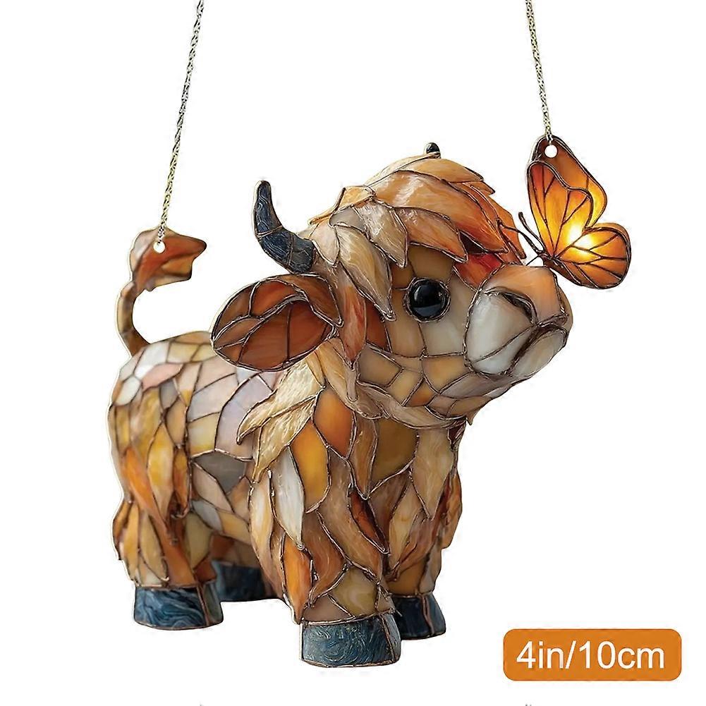 Stained Glass Style Highland Cow Butterflies Suncatchers Window Hanging Pendant Garden Patio Decor Valentine Present