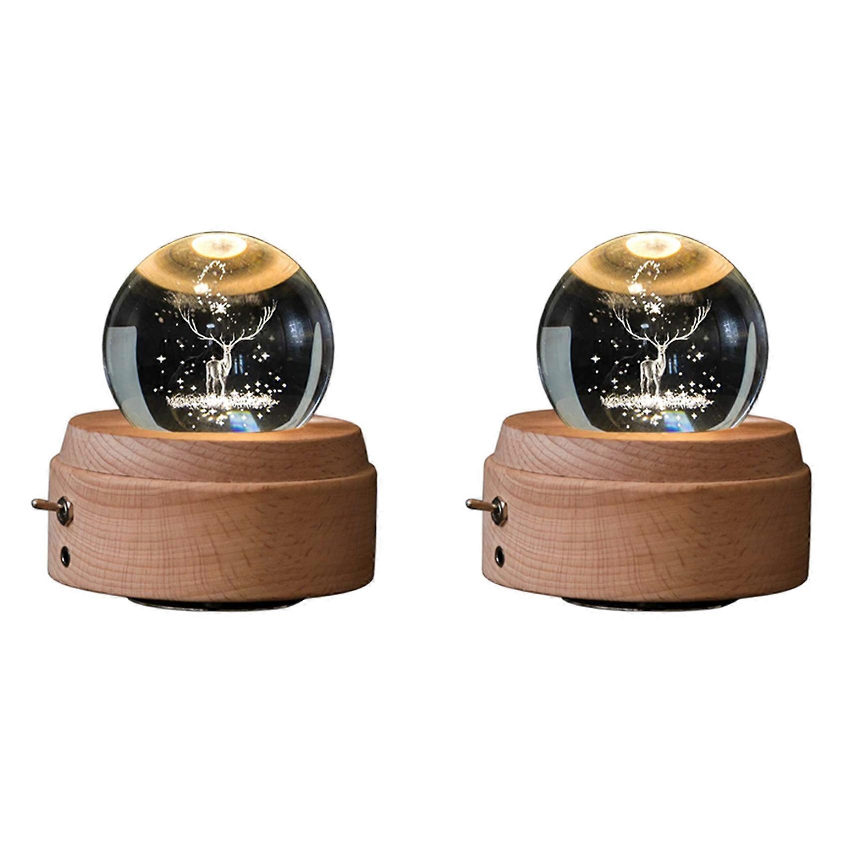 2X 3D Crystal Ball Music Box the Deer Luminous Rotating Musical Box with Projection LED Light
