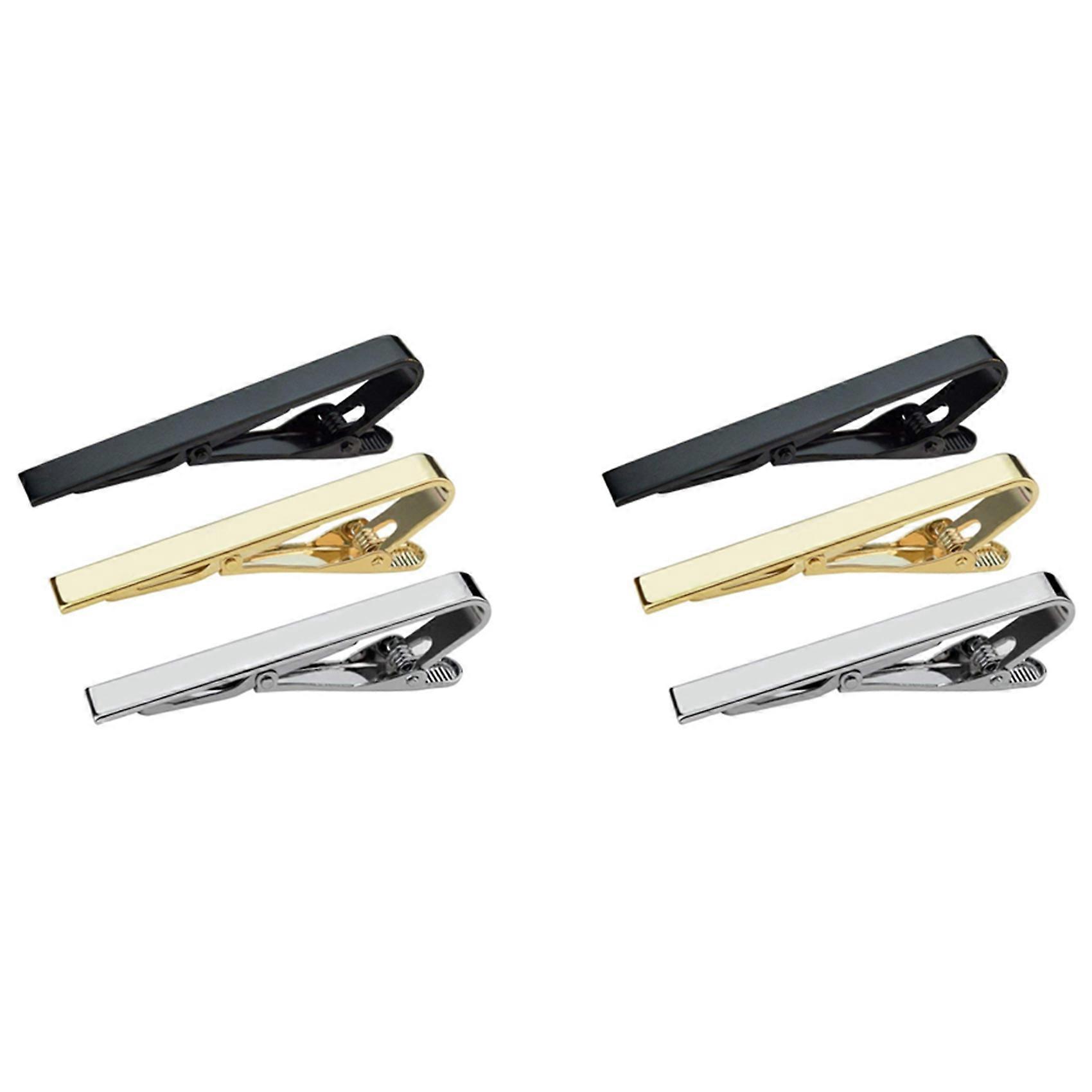 6Pcs Tie Bar Clip, Tie Tack Pins Tie Clips Men Silver Gold Black Necktie Bar Pinch Clip Set 2.2 Inch Clasps