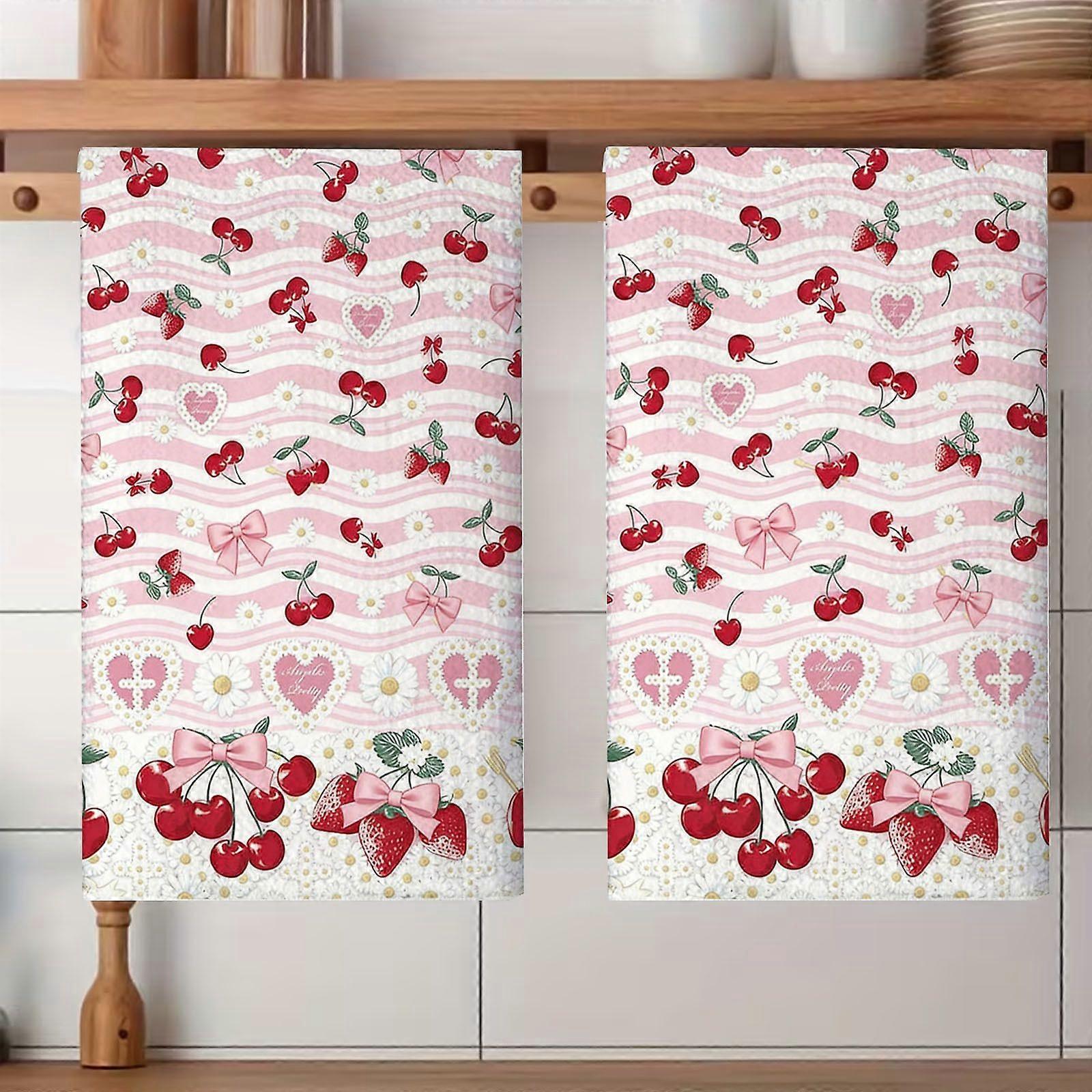 Bow Cherry Kitchen Towels Set of 2 Reusable Hand Tea Towel for Cleaning Spring Absorbent Dishcloths Cute Home Decor Housewarming Cherry Kitchen Decor