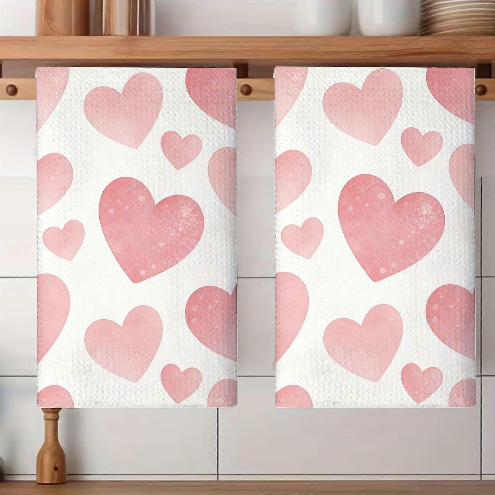 Love heart Valentine's Day Red Kitchen Towels Set of 2, Reusable Hand Tea Towel for Cleaning, Hand Dish Towels for Kitchen College Dorm Room Bathroom
