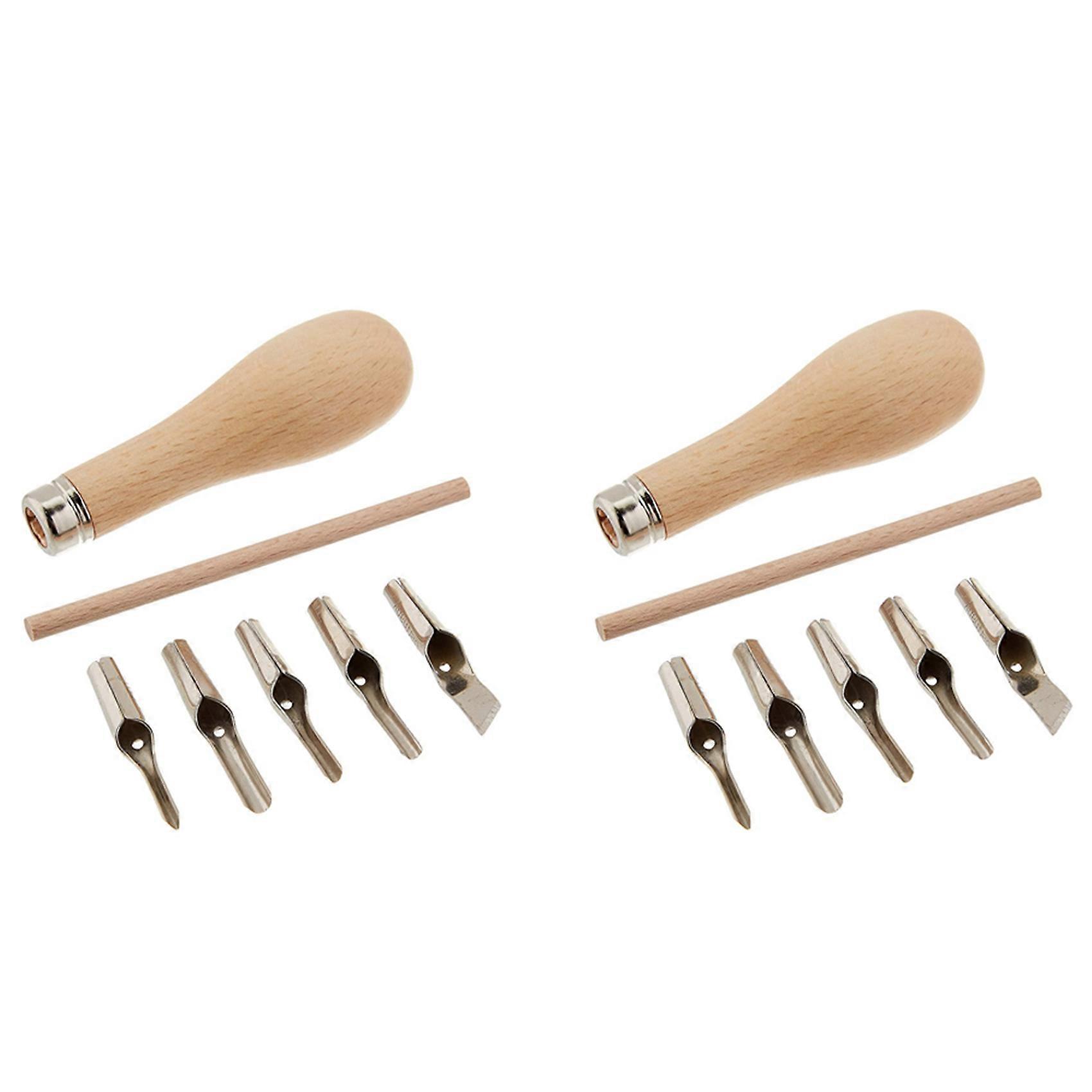 2X Lino Block Cutting Rubber Stamp Carving Tools with 10 Blade Wood Handle Printmaking Carving Tools Set
