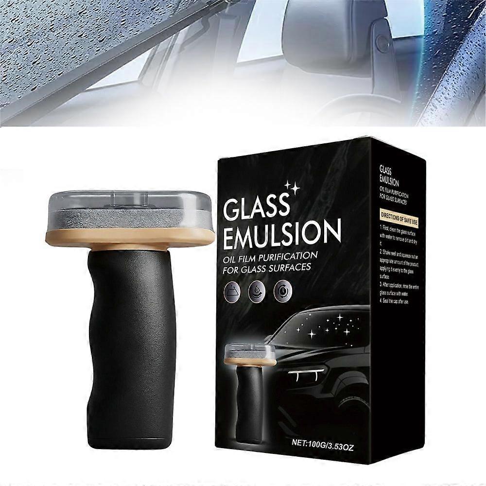 Glass Oil Film Remover for Car, 2026 New Roll-On Glass Compound with Cleaning Board, Removes Oil Film & Smudges, Improve Windshield Clarity for Safe D