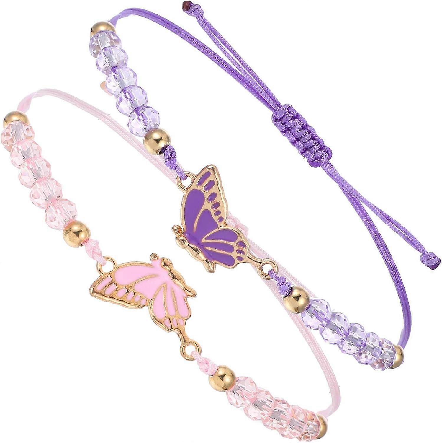 2PCS Butterfly Friendship Bracelets, Butterfly Matching Bracelets, Adjustable Strand Best Friends Bracelet for 2 Handmade Charm Friendship Jewelry