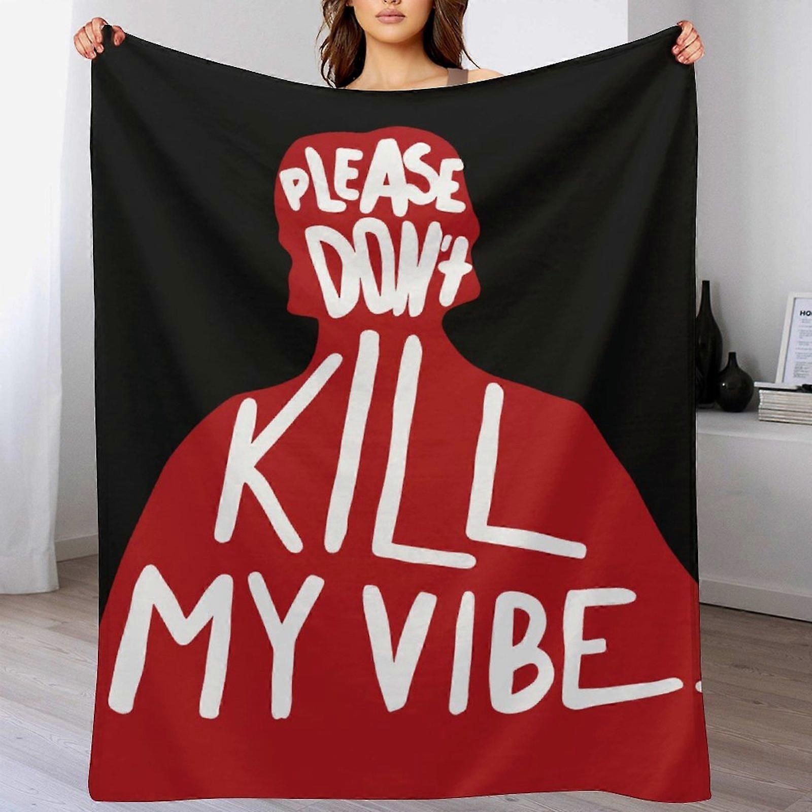 "Please Don't Kill My Vibe" Bold Text Print Flannel Blanket - Soft Warm Throw | Edgy Humorous Gift for Young Adults