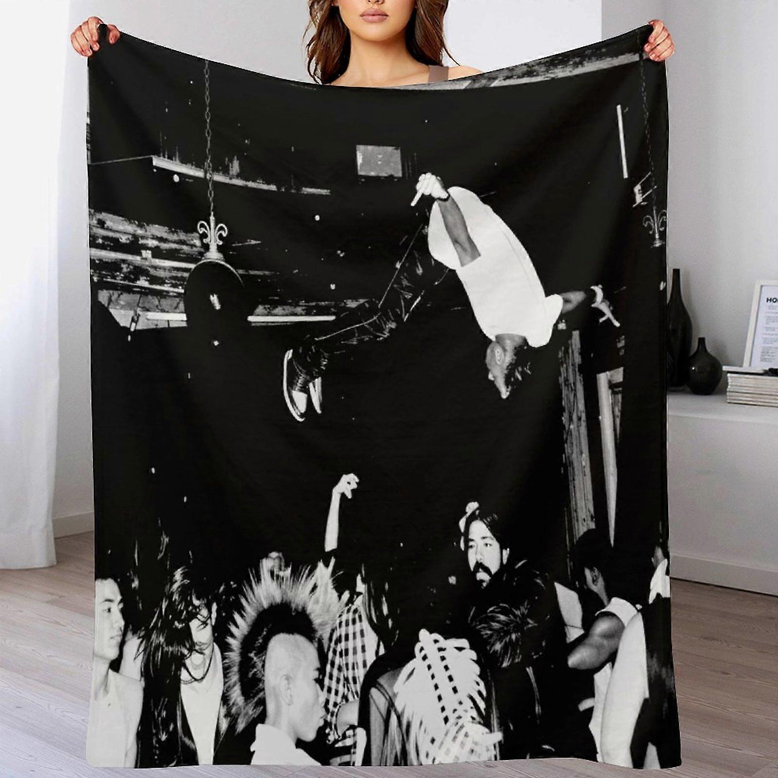 Punk Concert Black & White Photo Print Flannel Blanket - Soft Warm Throw | Retro Music Decor for Punk Rock Fans