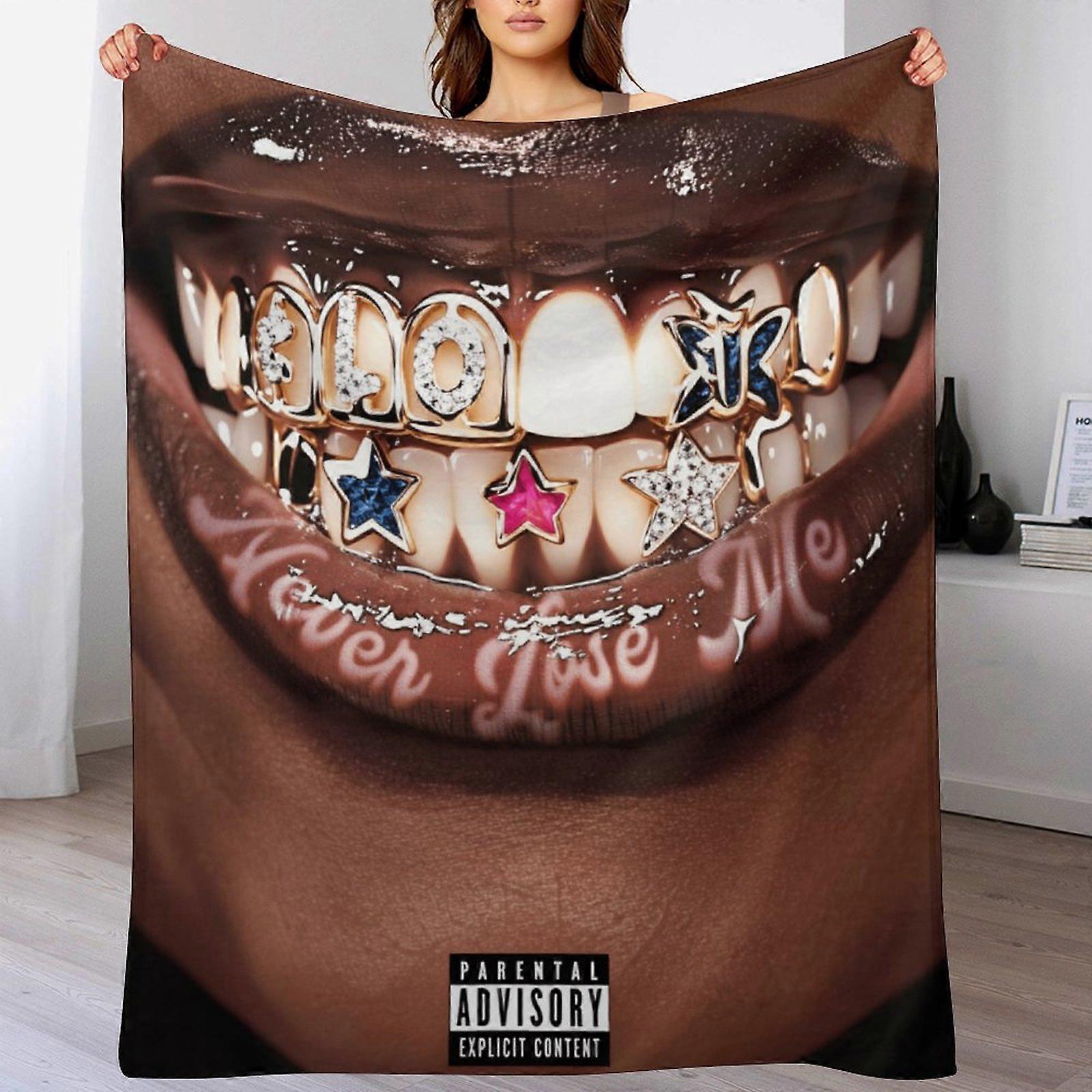 "Never Lose Me" Grills & Lips Print Flannel Blanket - Cozy Warm Throw | Hip-Hop Style Decor for Music Lovers