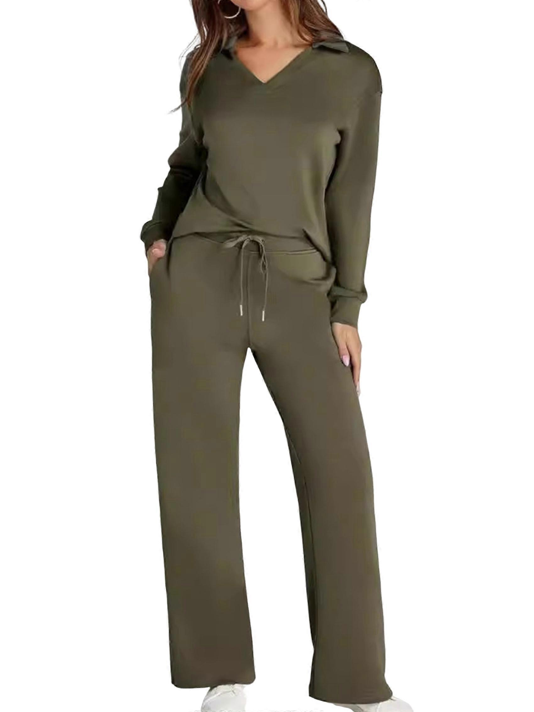 Two Piece Sets for Women V Neck Casual Matching Sets Loungewear Fall Clothes Travel Outfits Fashion Army Green XL