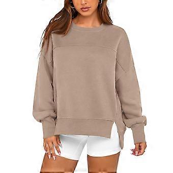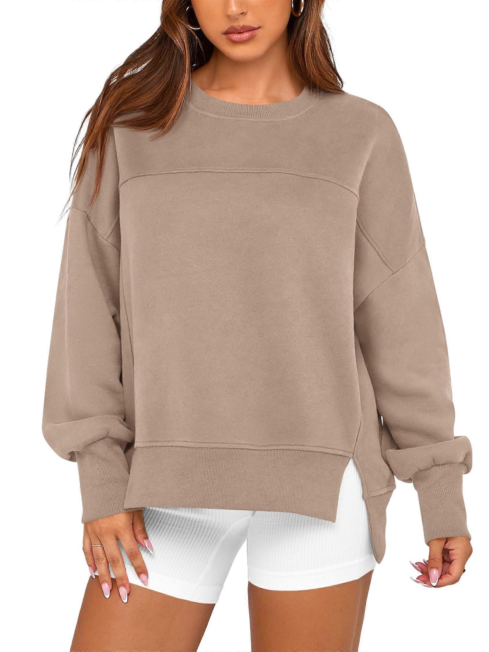Women'S Casual Crewneck Sweatshirts 2025 Spring Fall Long Sleeve Side Slit Workout Fleece Pullover Tops Khaki S
