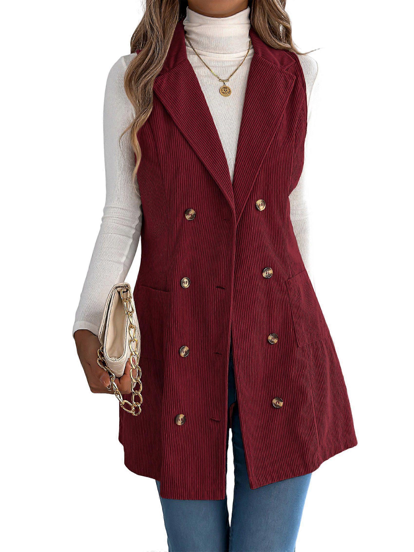 Women'S Dress Khaki Color Block Spring Autumn Long Sleeve Striped Fake Blazer for Women Wine Red M
