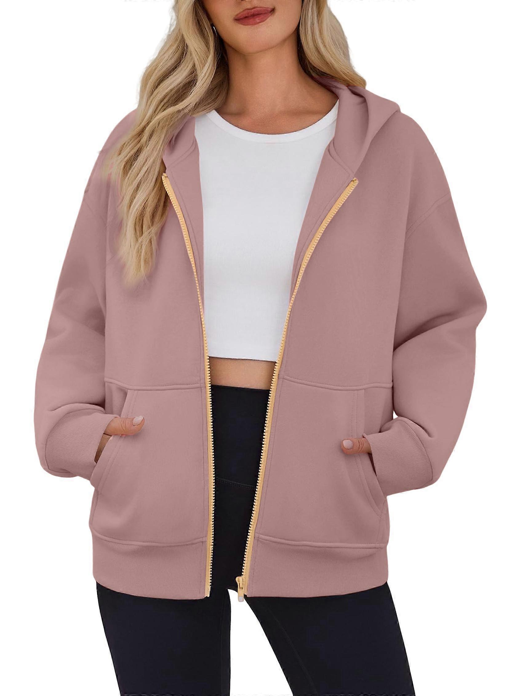 Hoodies for Women Sweatshirt Zip Up Hoodie Fall Fashion Trendy Long Sleeve Jackets Winter Clothing Outfits Pink S