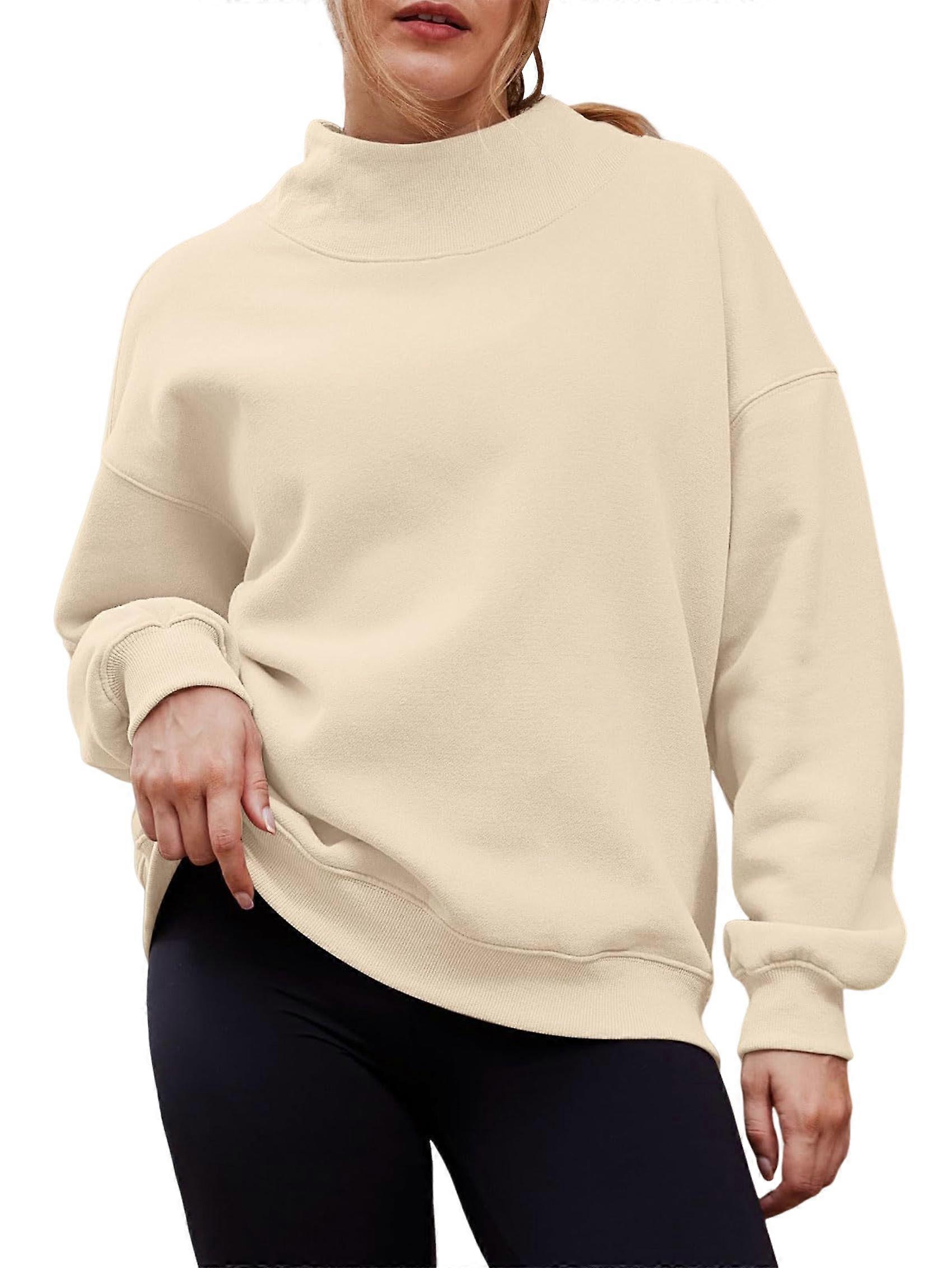 Womens Oversized Sweatshirts Highneck Pullover Long Sleeve Hoodies Tops Fall Fashion Outfits Clothes Apricot L