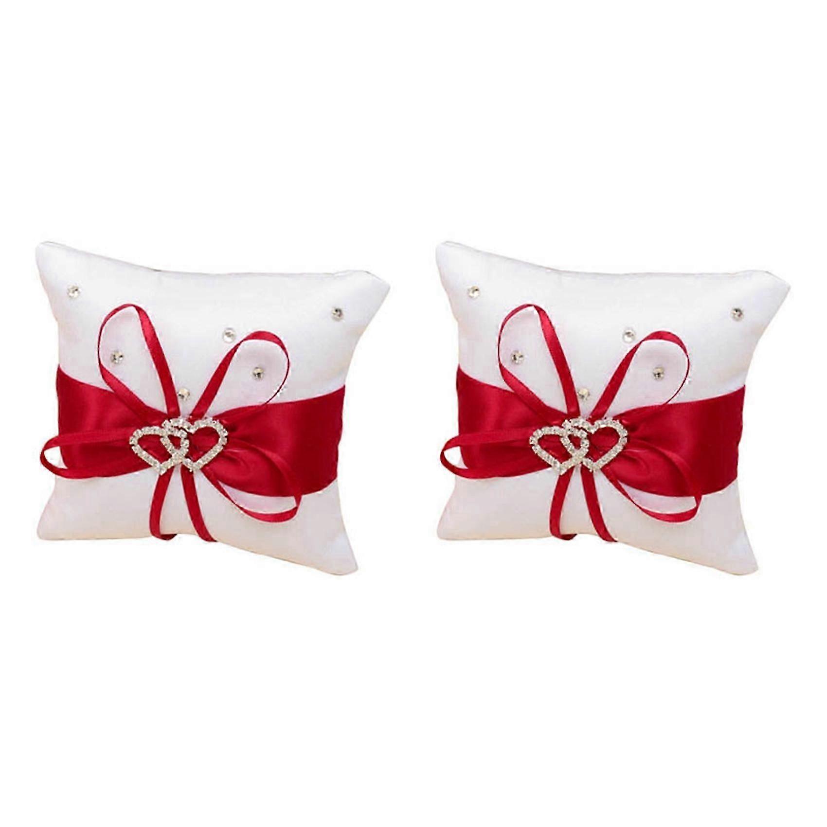 2X Ring Pillow compatible Wedding Ring Pillow with Satin Ribbons Red + White 10 cm x 10 cm
