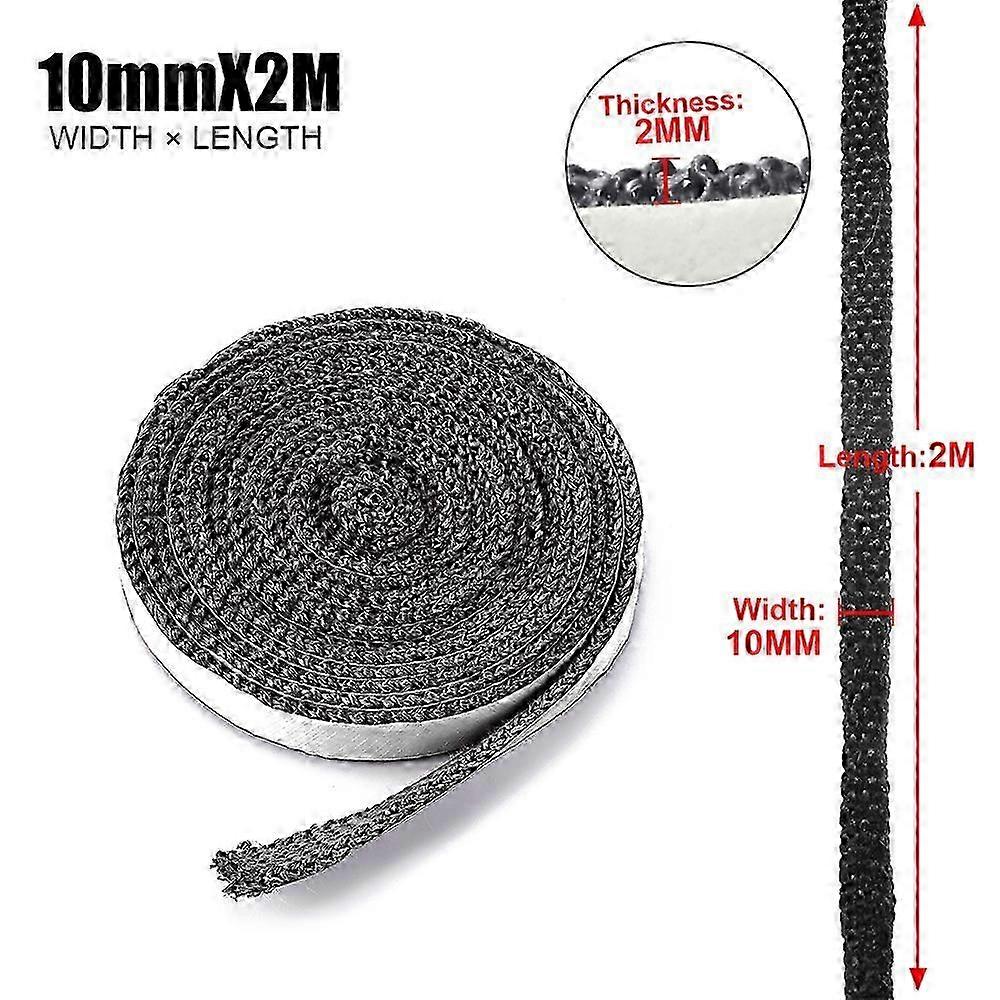 Self-Adhesive Fiberglass Fireplace Door Sealing Strip, Black Flat Stove Rope, Replacement Gasket Tape, 10/15mm Width, 2m Length