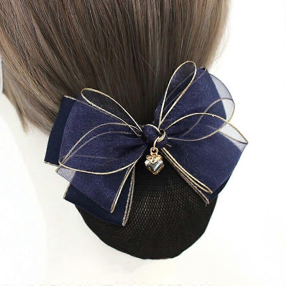 Vintage Nylon Hair Snood for Women Retro Hair Net with Bow Elegant Mesh Headcover Navy Blue