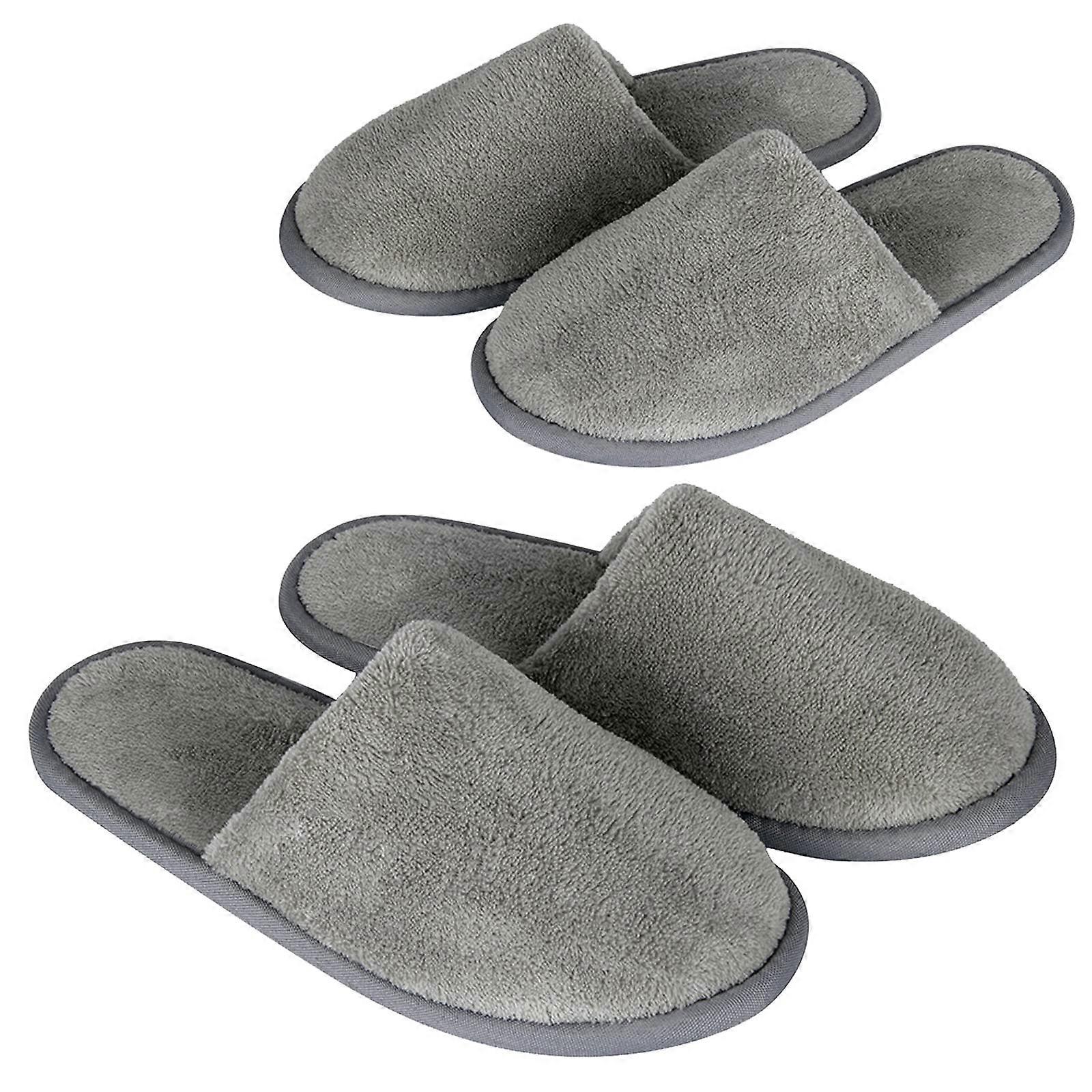 Spa Slippers Closed Toe 12 Pairs Gray Fluffy Coral Fleece Hotel Slippers with Padded EVA Sole
