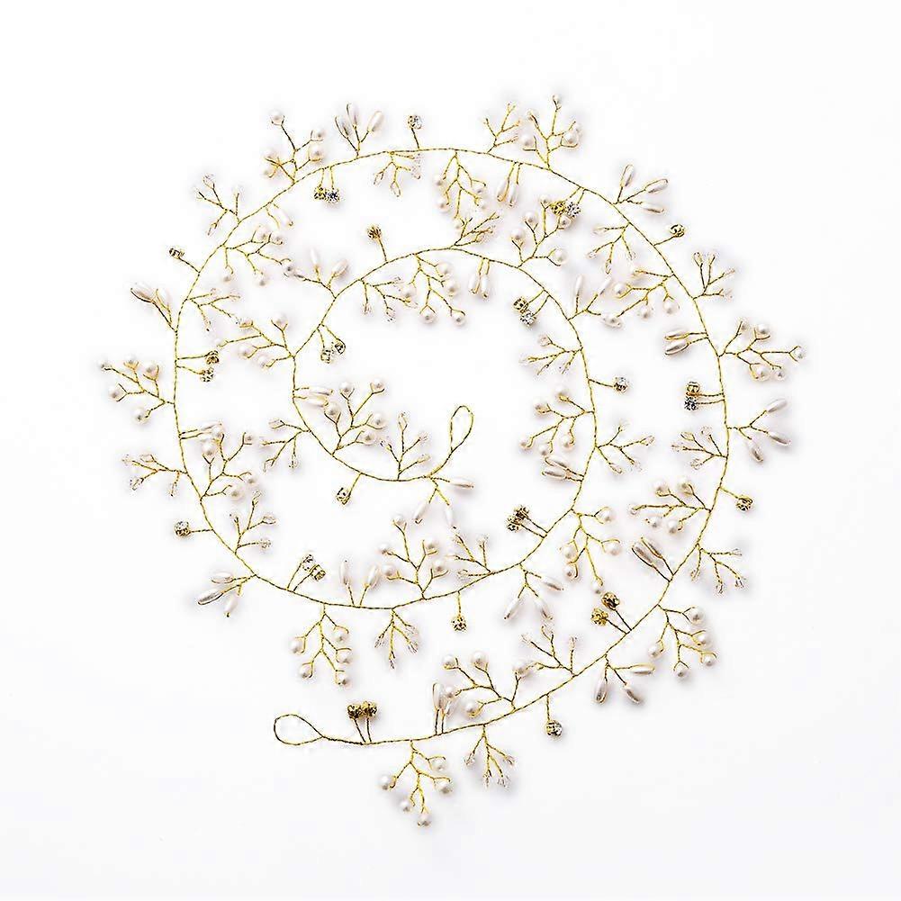 Bridal Hair Accessories with Pearls and Rhinestones, Gold Wedding Headpiece for Brides and Bridesmaids, 39in