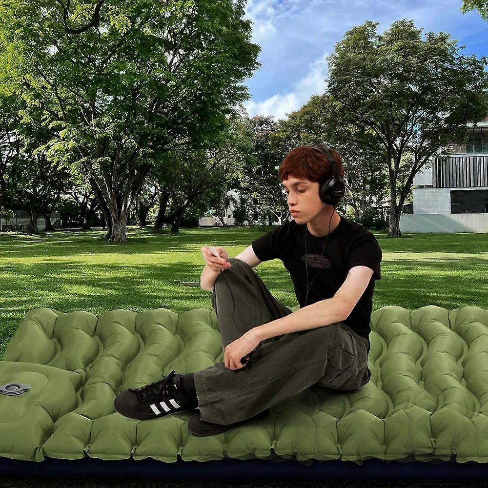 Outdoor Foot Pump Inflatable Sleeping Pad Portable Camping Mattress with Built-in Pillow Waterproof