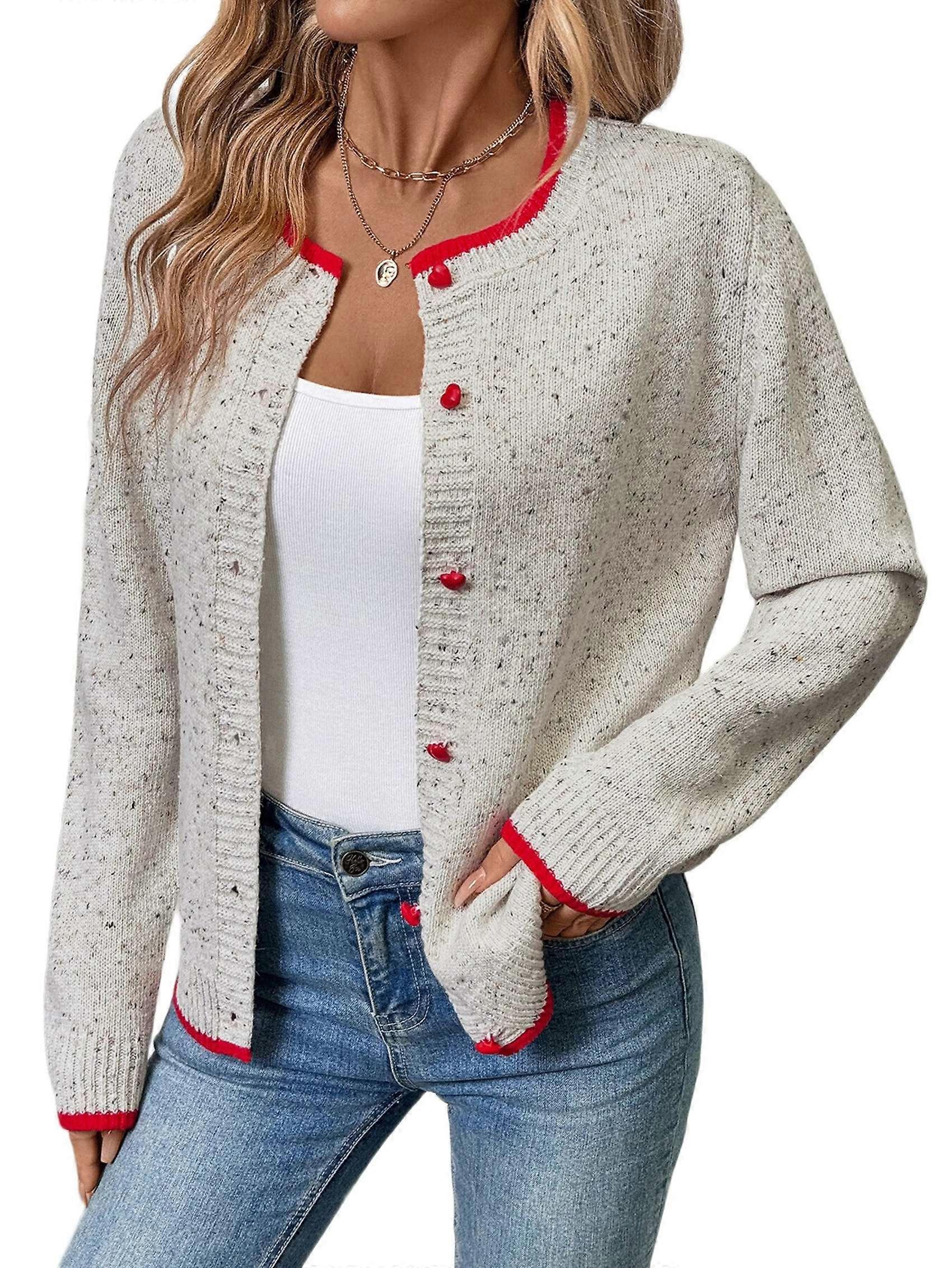 Women'S Button Down Knit Cardigan Sweaters Crew-Neck Long-Sleeve Casual Jumper Outwears Light Gray M
