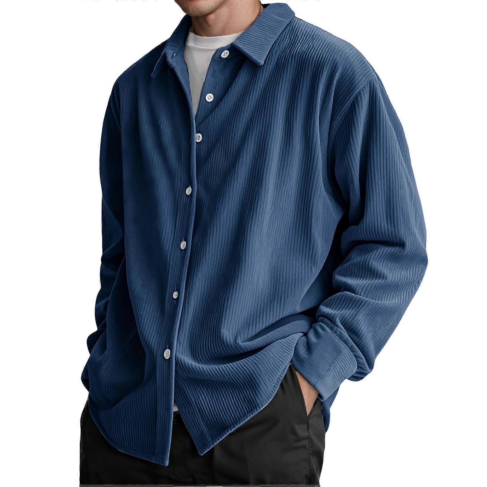 Corduroy Shirt Mens Lapel Long Sleeve Wrinkle Free Casual Button Down Shirts Work Overshirt Shackets Navy Blue M