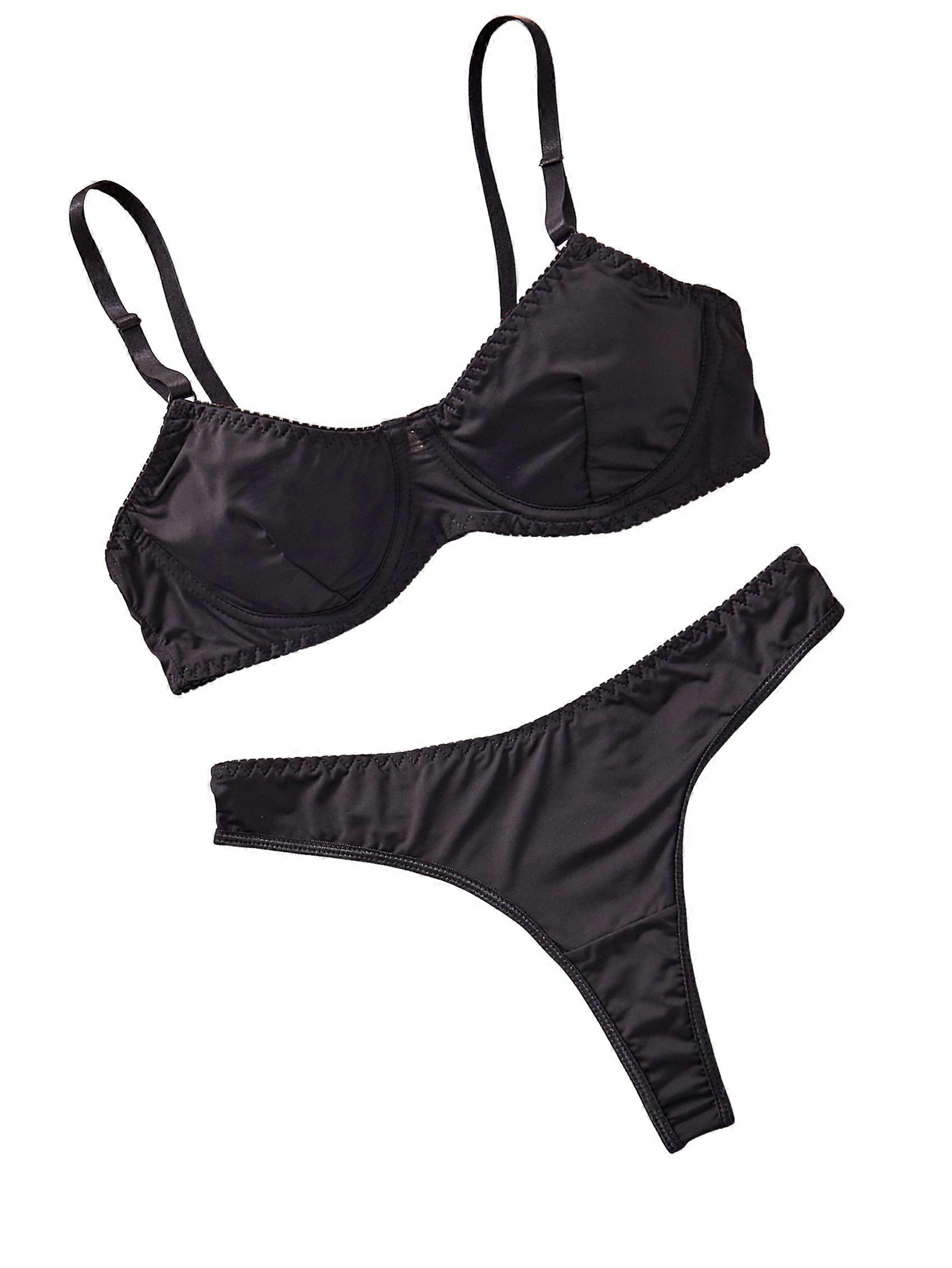 Material: 97% polyester, 3% spandex 2 piece lingerie set features print, triangle bra and matching panty Ideal for sleepwear, lingerie party, wedding night, honeymoon, anniversary gifts and every special night Hand wash or machine wash, do not bleach Please refer to the size measurement in image before ordering Size: S=US4=UK8=EU36(cm / inch) Bust: 92.0 / 36.22, Waist: 70.0 / 27.56 Colour: Black Material: 97% Polyester, 3% Spandex Package Contents: 1*Women's underwear sets Only the above package content, other products are not included. Note: Light reflection and different displays may cause the color of the item in the picture a little different from the real thing. The measurement allowed error is +/- 1-3cm.
