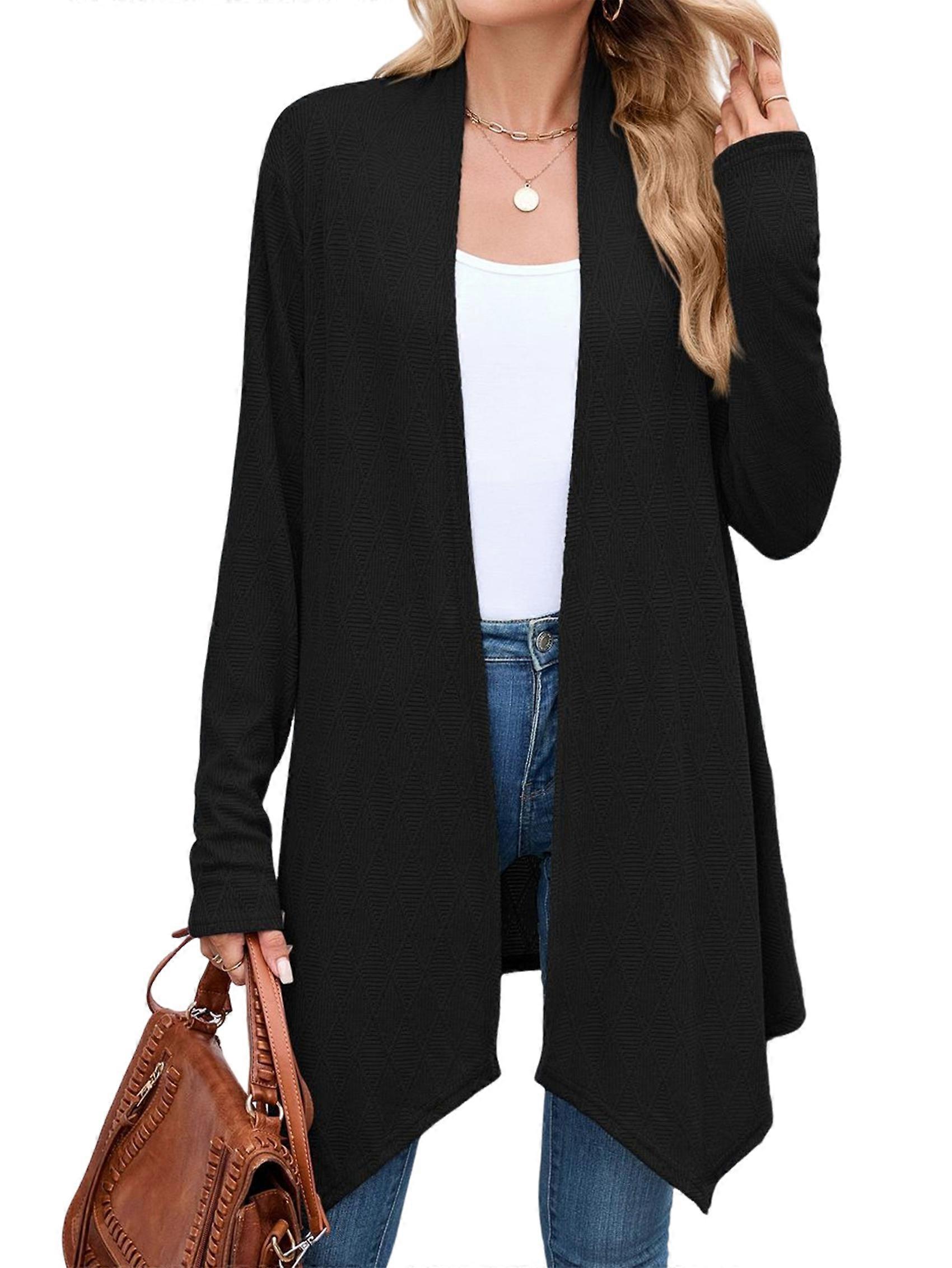 Lightweight and soft fabric, little stretchy, breathable, skin-friendly. Special flower pattern knit cardigan with a bit of hollow, relaxed fit, long sleeve, open front, solid color, below hip length, casual and boho style. 2025 Fashion Cardigan Sweater with lazy, fashion and sweet style easy to pair with basic tee, tank tops, dress, jeans, leggings, skirts, swimsuit, bikini, casual cardigan makes you look more stylish and adorable. This Lightweight cardigan for daily wear, school, office, work, party, date, outdoor, air-conditioned room, summer kimonos beach, hawaiian vacation, beach cover up. This fashion women cardigan suitable in spring, summer, fall and winter. Size: XXL=US12=UK16=EU44(cm / inch) Bust: 125.0 / 49.21, Sleeve: 64.0 / 25.20, Length: 91.0 / 35.83 Colour: Black Material: 65% Rayon, 30% Polyester, 5% Spandex Package Contents: 1*Cardigan Only the above package content, other products are not included. Note: Light reflection and different displays may cause the color of the item in the picture a little different from the real thing. The measurement allowed error is +/- 1-3cm.