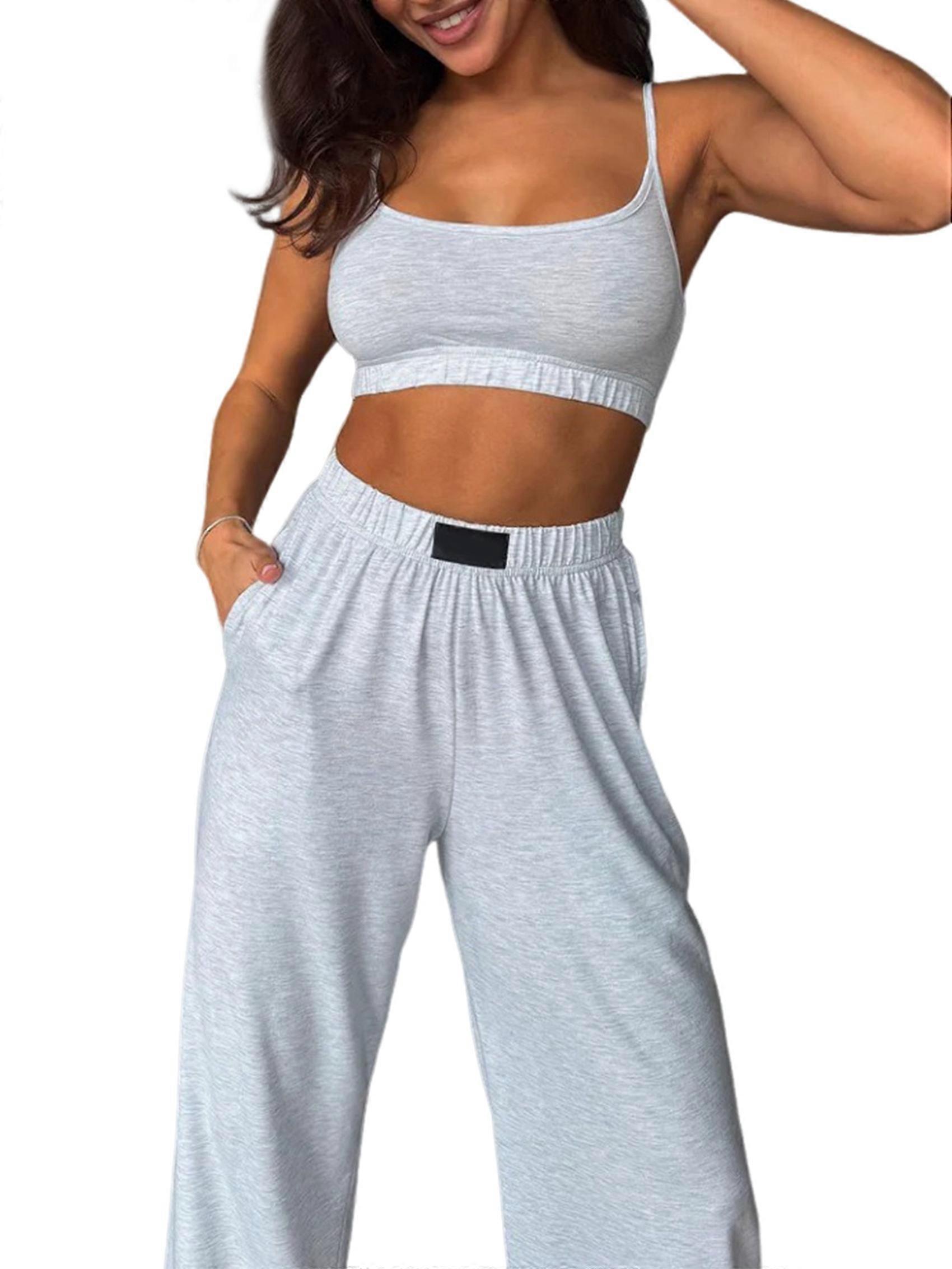 Womens Casual Sets Two Piece Tube Top Camisole Sleeveless Elastic Waist Summer Sweatsuit with Pocket Light Gray L
