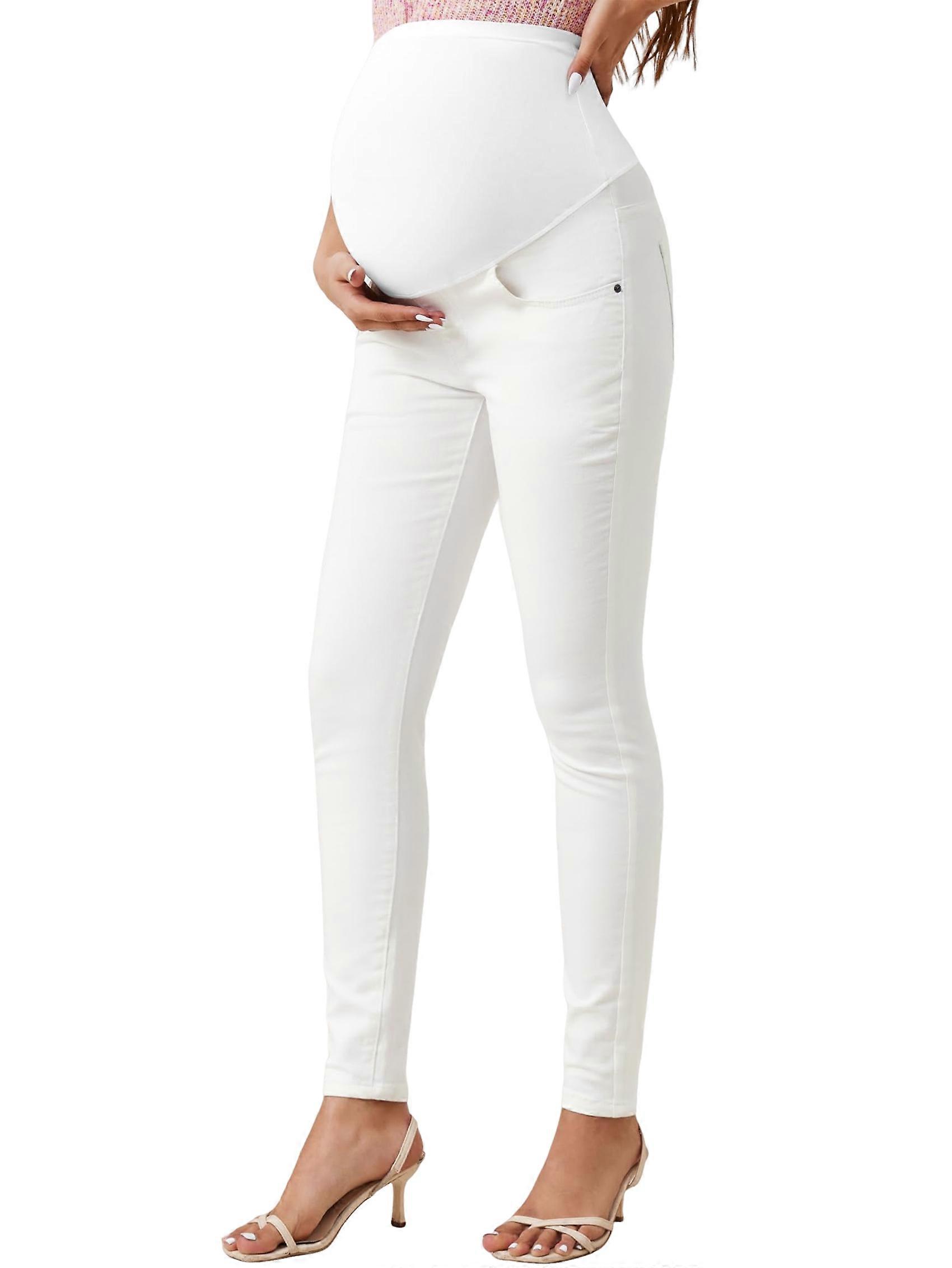 Women'S Maternity Jeans over Belly Skinny Stretchy Denim Pants Comfy Slim Pregnancy Pants White L