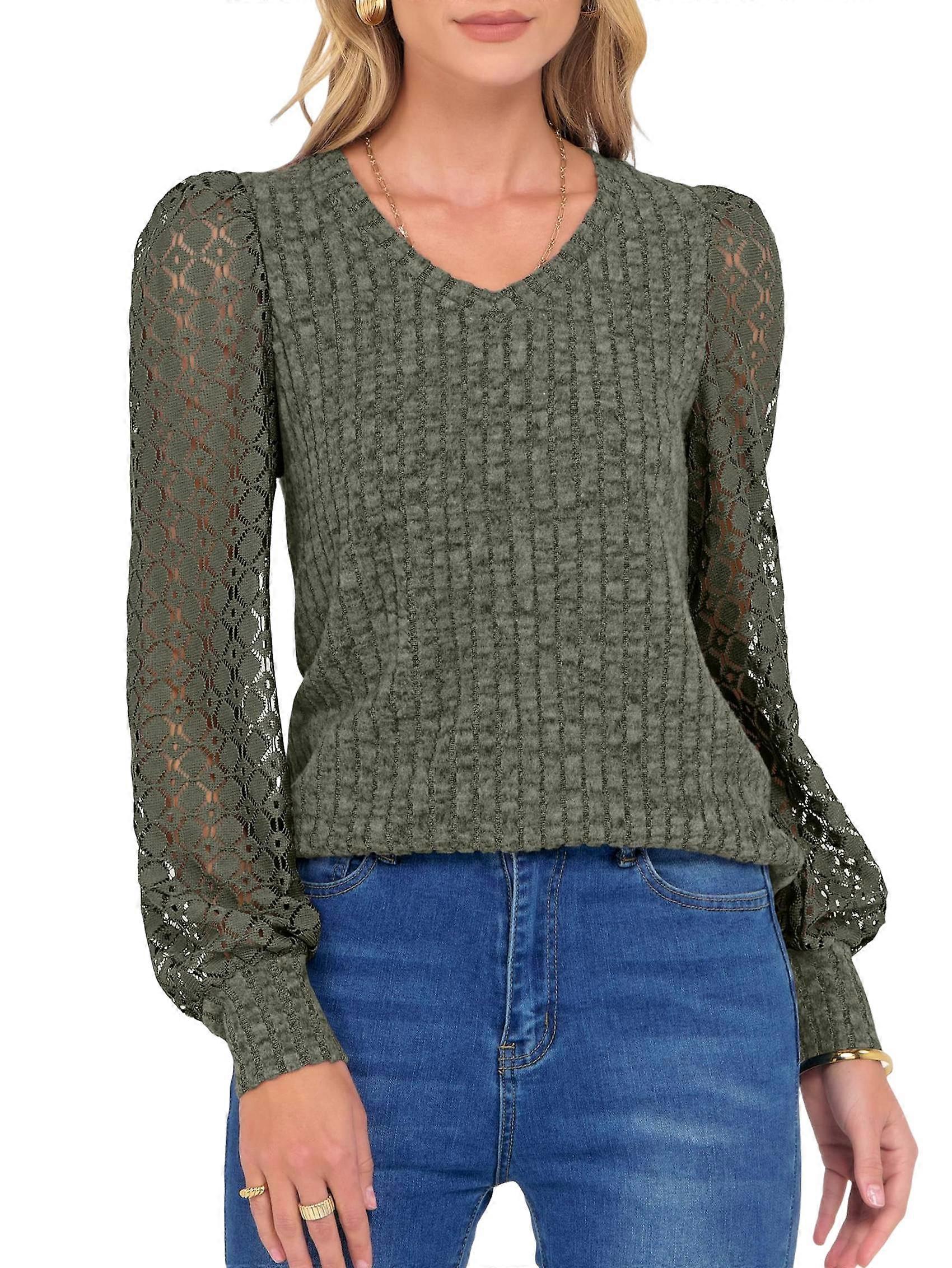 Women Long Sleeve Fall Lace Tops 2025 Fashion V Neck Sweaters Dressy Casual Winter Trendy Outfit Army Green M