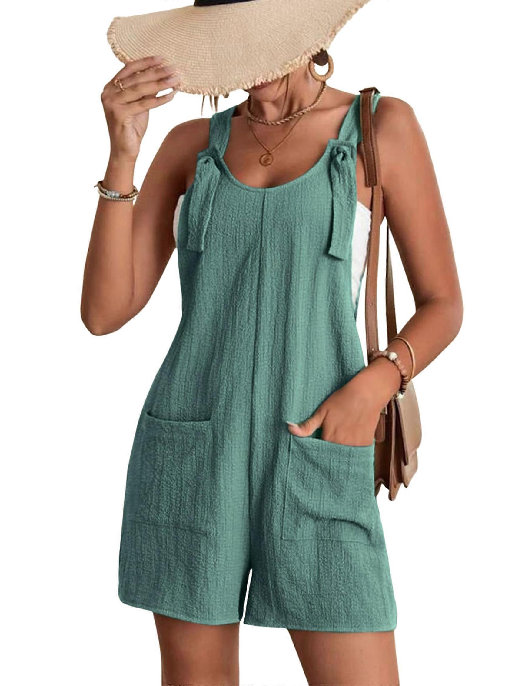 Women'S Summer Fashionable Short Jumpsuits, Casual Sleeveless Jumpsuits with Pockets Blue Gray L
