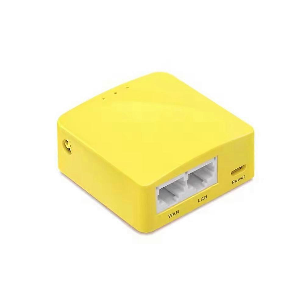 High Wi-Fi Transmission Rate :Enjoy lightning-fast internet speeds with a transmission rate of up to 300 Mbps. Portable and Compact :Take your internet on-the-go with this mini wireless router that fits easily in your pocket. VPN Functionality :Stay safe and secure online with the ability to connect to a VPN network. Multiple LAN Ports :Connect multiple devices to the internet with up to 1 LAN port and 1 x10/100Mbps WAN port. Powered by Power Adapter: Able to use a laptop or power bank or a standard 5V/2A DC adapters (sold separately) as a power supply. HIGHLIGHTED FEATURES: Our GL-MT300N-V2 is upgraded to chip MT7628NN, and the RAM is enhanced from 64MB to 128MB. Also, the MTK driver helps to improve Wi-Fi connections, coupled with faster OpenVPN encryption. 4 GPIOs are included for DIY fun. From this, GL-MT300N-V2 is your best pal for travel. [OPEN SOURCE & PROGRAMMABLE] OpenWrt pre-installed, USB disk extendable [LARGER STORAGE & EXTENDABILITY] 128MB RAM, 16MB Flash ROM, dual Ethernet ports, UART and GPIOs available for hardware DIY. [OPENVPN CLIENT] OpenVPN client pre-installed, compatible with 30+ VPN service providers Specification: CPU: mtk7628nn @ 580MHz SoC Memory: DDR2 128MB Storage: FLASH 16MB Antennas: Internal Protocol: IEEE 802.11b/g/n Wi-Fi Speed: 300Mbps (2.4GHz) Interface: 1 x WAN Ethernet port, 1 x LAN Ethernet port, 3 x LEDs, 1 x USB 2.0 port, 1 x Micro USB port Ethernet Port: 2 x 10/100M NOTE: USB Tethering is not compatible with iOS14 yet. Color: Yellow Material: plastic Package Contents: 1 x GL-MT300N-V2 mini router 1 x USB cable 1 x Ethernet cable Only the above package content, other products are not included. Note: Light reflection and different displays may cause the color of the item in the picture a little different from the real thing. The measurement allowed error is +/- 1-3cm.