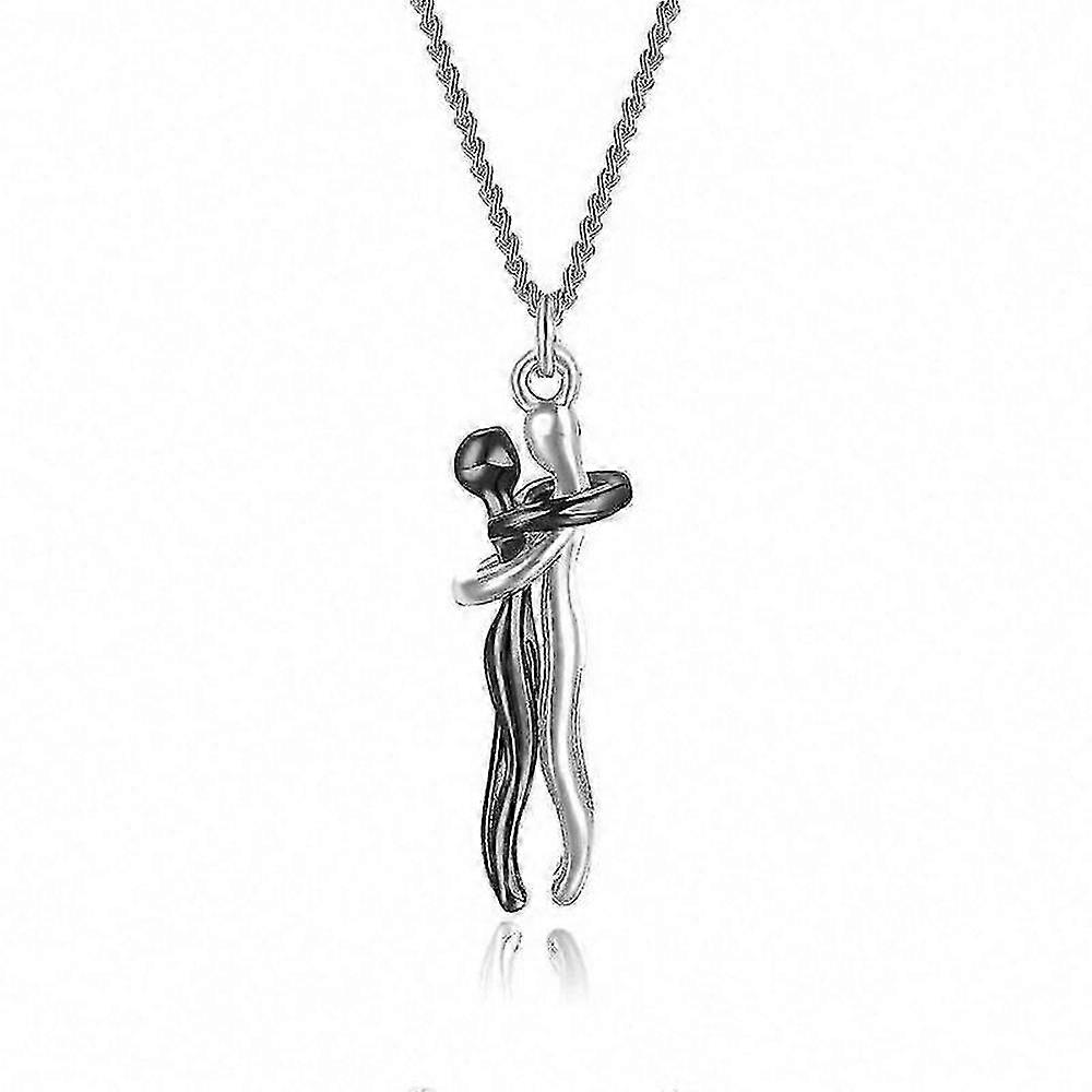 S925 Sterling Silver Hugging Couple Necklace for Men and Women, Valentine's Day Gift