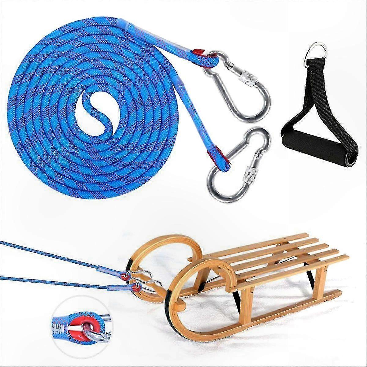 Sledge Pull Rope with Carabiner, 10mm Thick Sledge Lead, 4m Sledge Rope with Handle for Sledges and Pulling Tasks