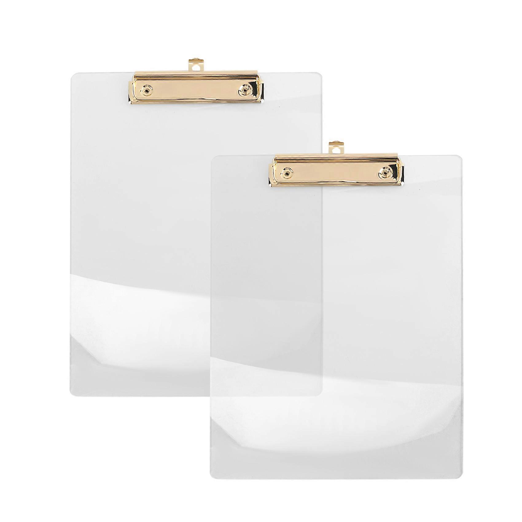2 Pack Clear Acrylic Clipboard with Gold Clip, 8.8X12.2 A4 Letter Size, School and Home Supplies,Office Supplies