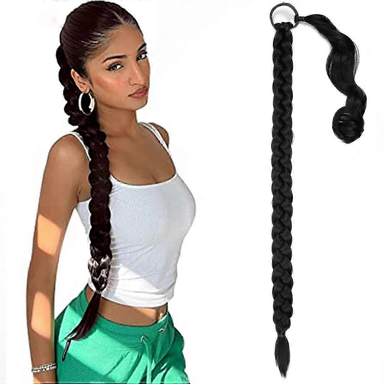 Final Product DescriptionThis braided ponytail extension is designed to add length and volume with a simple wrap-around design. Made from soft synthetic fiber, it provides a smooth appearance and is suitable for everyday styling or special occasions. Soft Synthetic Fiber MaterialCrafted from heat-resistant synthetic hair fiber, the ponytail extension feels soft and smooth, is easy to comb, and helps reduce tangling during daily wear. Pre-Sectioned Braided DesignThe ponytail comes divided into three sleek braid sections, plus one separate wrap-around strand. This structure helps create neat and uniform braid styles with less styling effort. Length & WeightTotal length: approx. 34 inches / 86 cm (length may appear slightly shorter once braided)Weight: approx. 180 g Wrap-Around Hair Tie AttachmentDesigned with a sturdy elastic hair tie and a wrap-around strand to help secure the ponytail firmly in place and blend with natural hair. Suitable for Multiple OccasionsThis ponytail extension can be worn for daily use, parties, travel, photography, or casual outings, offering a versatile styling option. Easy to UseDesigned for quick application, suitable for different hair lengths and types. Can be installed in a short time without professional styling experience. Care NoticeSynthetic hair may tangle due to static or humidity. Light hair-softening products and gentle brushing from the ends upward are recommended to maintain smoothness. Product InformationType: Braided Ponytail ExtensionMaterial: Synthetic FiberColor: BlondeAttachment: Elastic Hair Tie + Wrap Strand Package Includes1 × Braided Ponytail Extension