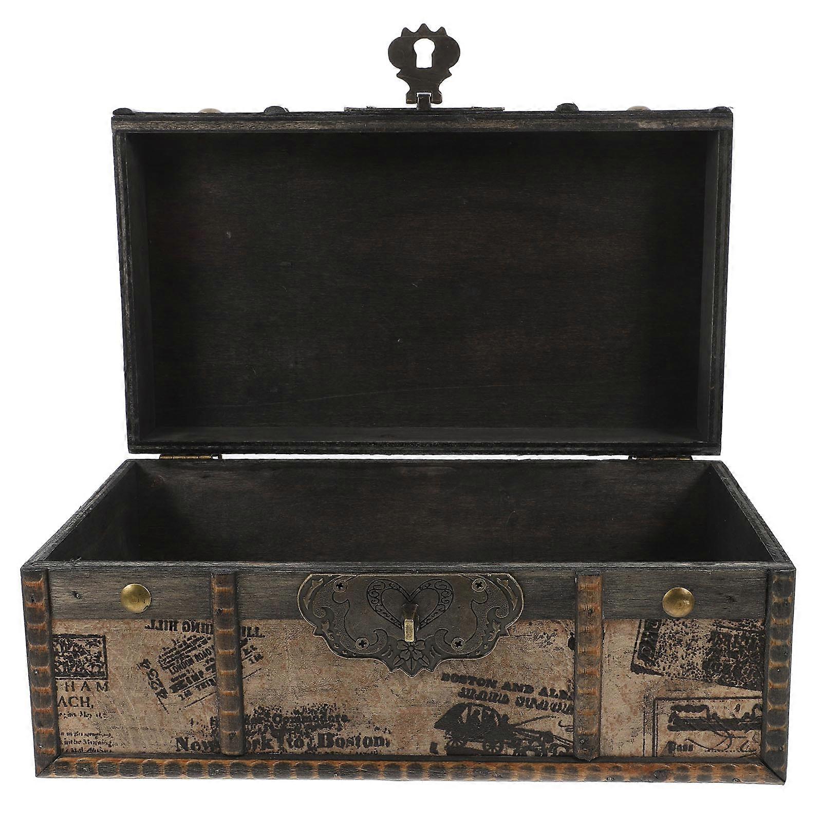 Vintage Style Treasure Chest With Password Lock Wooden Jewelry Box For Office Use 26.30X14.80X12.00CM 1Pack