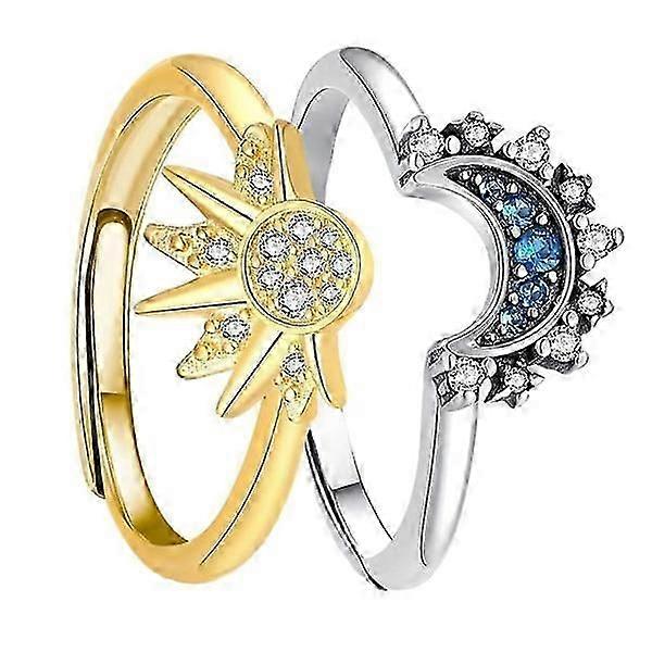 Sun and Moon Ring Set, Valentine's Day Gift Adjustable Jewelry with Celestial Motifs Matching Rings as Friendship Rings Gifts