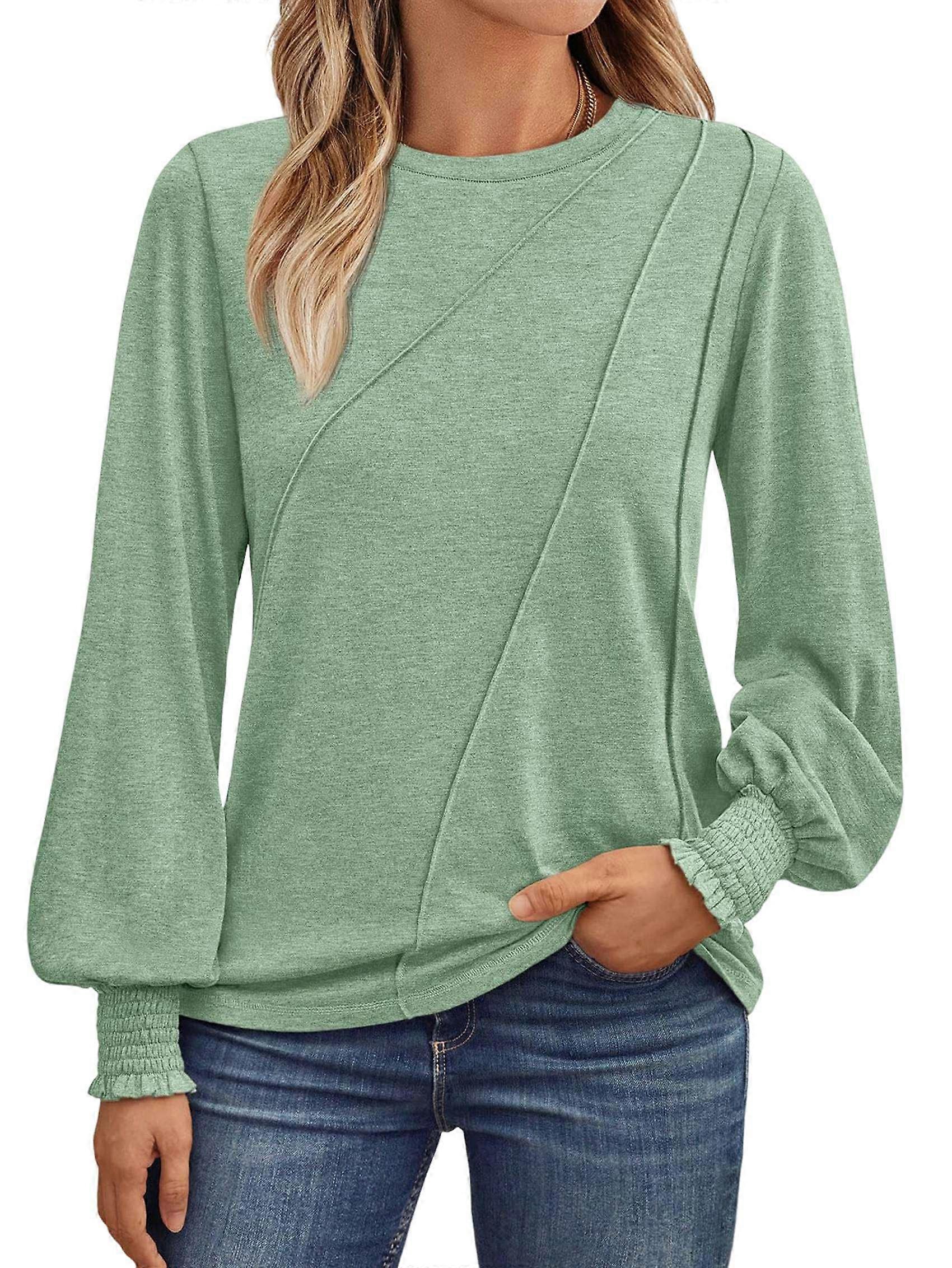 Womens Long Sleeve Tops Pleated Crew Neck Business Casual Blouses Fashion Clothes Light Green XL