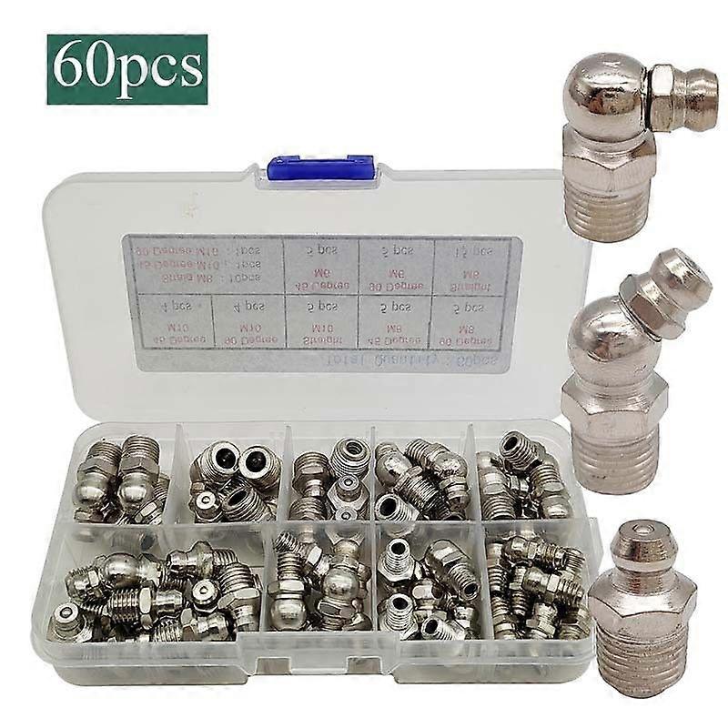 60pcs Universal Grease Nipples Straight Elbow Hydraulic M6 M8 M10