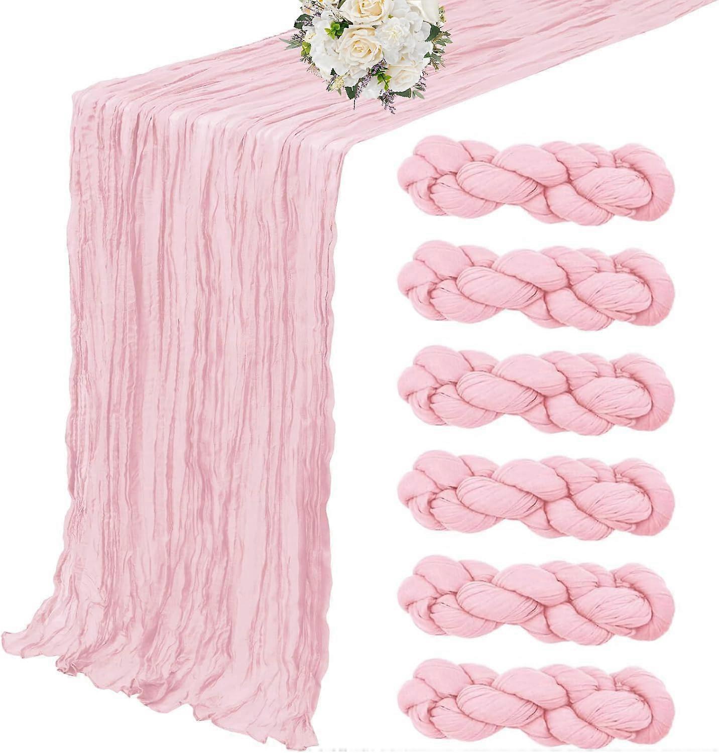 6 Pack Light Pink Cheesecloth Table Runner 10FT Boho Gauze Fabric Table Runner 35 x 120 Inch Spring Rustic Sheer Runner for Wedding Birthday Baby